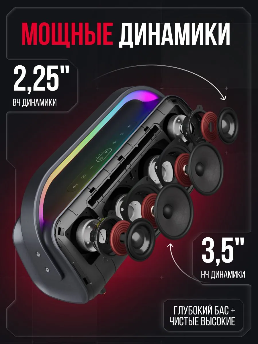 У Sven есть и максимально близкий аналог «Молнии Бит», пусть и не такой оригинальный по месту расположения рукоятки для переноски. Модель Sven PS-860 получила 2х58мм и 2х138 мм динамиков при мощности 50 Вт на канал. В отличие от «Молнии», здесь твитеры зажаты между более крупными низкочастотниками, так что звуковая картина совсем другая. Габаритные размеры почти такие же, как и форма бруска, только ручку утопили в верхней части корпуса. На маркетплейсах ее сейчас предлагают с большой скидкой – цена составляет около 8 тысяч рублей.