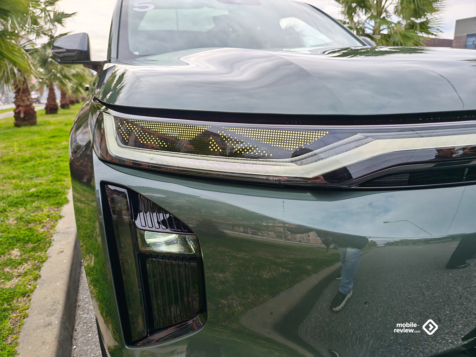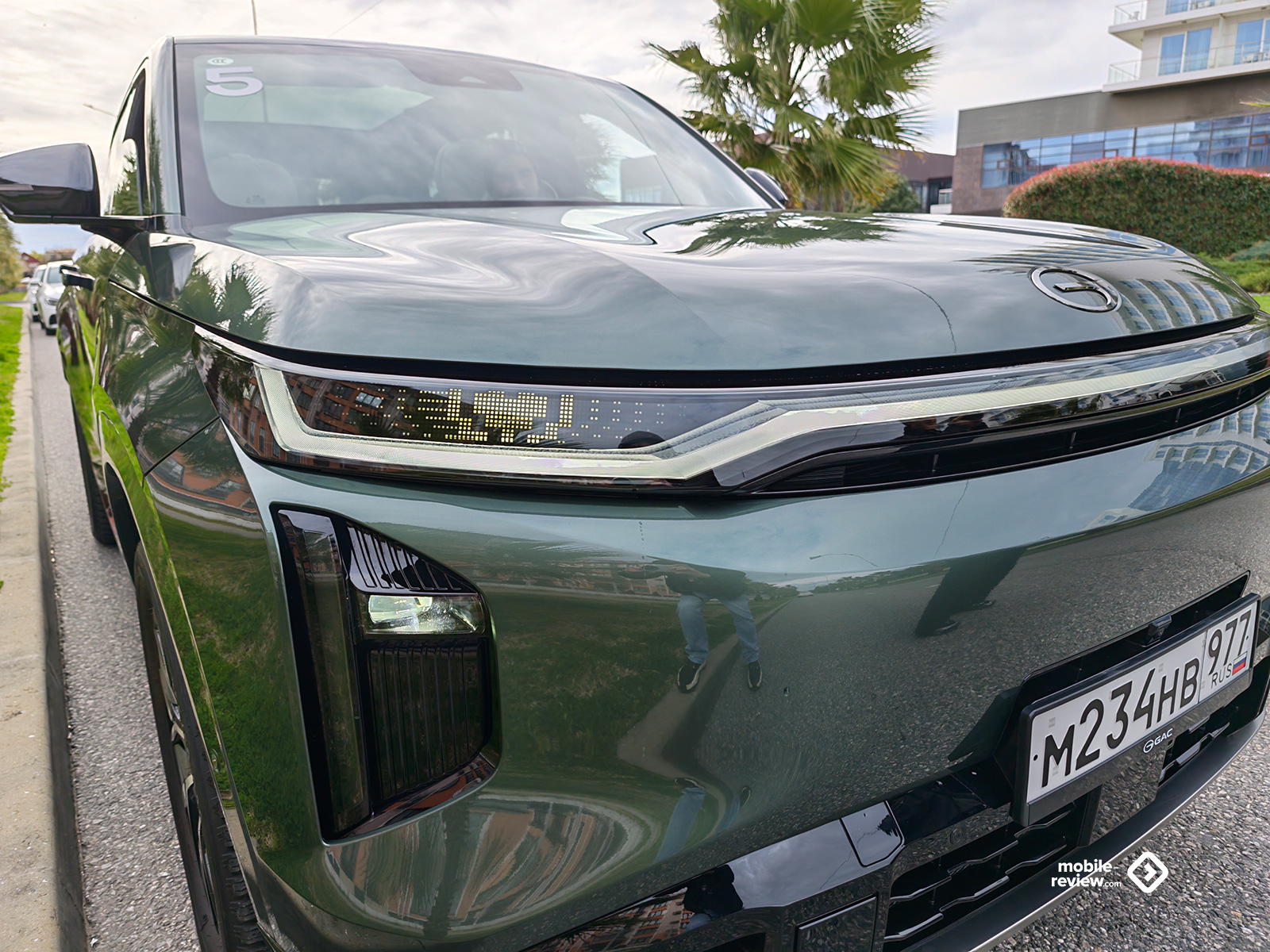 Передняя часть кроссовера несет на себе крупную светодиодную линию вдоль всего капота, привет Li, но при этом производитель немного обыграл её. Так, по краям кузова данная полоса расширяется на манер классических фар, а внутри неё можно вывести один из пяти анимированных рисунков, самым интересным из которых являются глаза. В статике же возможно отображение собственной надписи владельца. Фишка необязательная, но все же позволяет преобразить внешний вид автомобиля и даже сделать его более персонализированным.