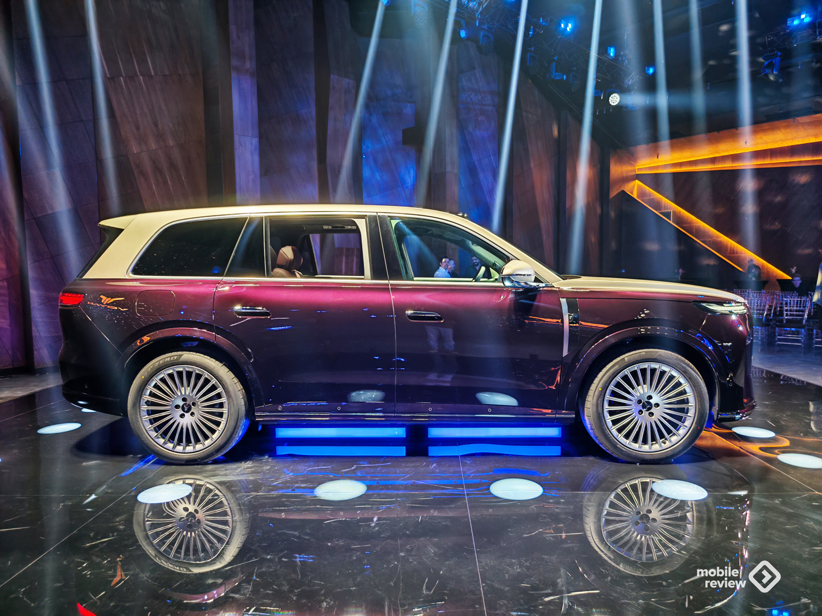 Новый Voyah Taishan является полноразмерным гибридным кроссовером, его габариты — 5230 x 2025 x 1817 мм, а колёсная база – 3120 мм. Модель предлагается в восьми цветовых вариантах кузова, два из которых представлены в двухцветной окраске. В последних вариантах автомобиль очень похож на Mercedes-Benz Maybach GLS, сходства также добавляет конструкция задней части кузова, особенно оформление оконной линии и задней стойки. Вообще же, Taishan вобрал в себя все модные тренды с рынка. Здесь мы видим массивную решетку радиатора с 34 вертикальными ламелями, окрашенными в серебристый цвет, что-то подобное чуть раньше появилось на Zeekr 9X. Светодиодная оптика спереди и сзади объединена активными полосами, а логотип марки подсвечивается. В дверные ручки с нижним хватом производитель также установил светодиоды, которые красиво переливаются, когда вы подходите к автомобилю, и, конечно, в данном случае вас встречает ещё и общий приветственный свет (доступно 6 вариантов его работы). Автомобиль может комплектоваться выезжающими порогами, также имеющими подсветку. А основной головной свет по текущей моде спущен на второй ярус, но находится он отнюдь не низко, что очень хорошо для нашей климатической зоны.