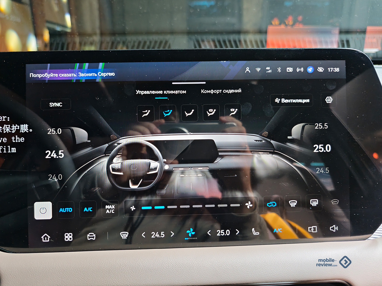 Дизайн интерьера также изменился, он стал более объёмным и сложным по архитектуре, также в видимой части появилось больше качественных материалов. На дверных картах стоят парящие подлокотники с непривычными, но красивыми ручками открытия дверей. Обращает на себя внимание и новое рулевое колесо уже привычной формы, лишь немного обрезанное снизу. К тому же на руле теперь установлены крупные и удобные кнопки управления. Цифровую приборную панель 12.8 дюйма объединили в единый бокс с 14.6-дюймовым сенсорным дисплеем мультимедиа, попутно сдвинув вниз основные физические клавиши управления двухзонным климат-контролем. На центральном тоннеле также высвободили место, переместив рычаг АКПП под руль, так что теперь на нем в открытом доступе имеется стенд под два смартфона, а правый с быстрой 50 Вт зарядкой с активным охлаждением.