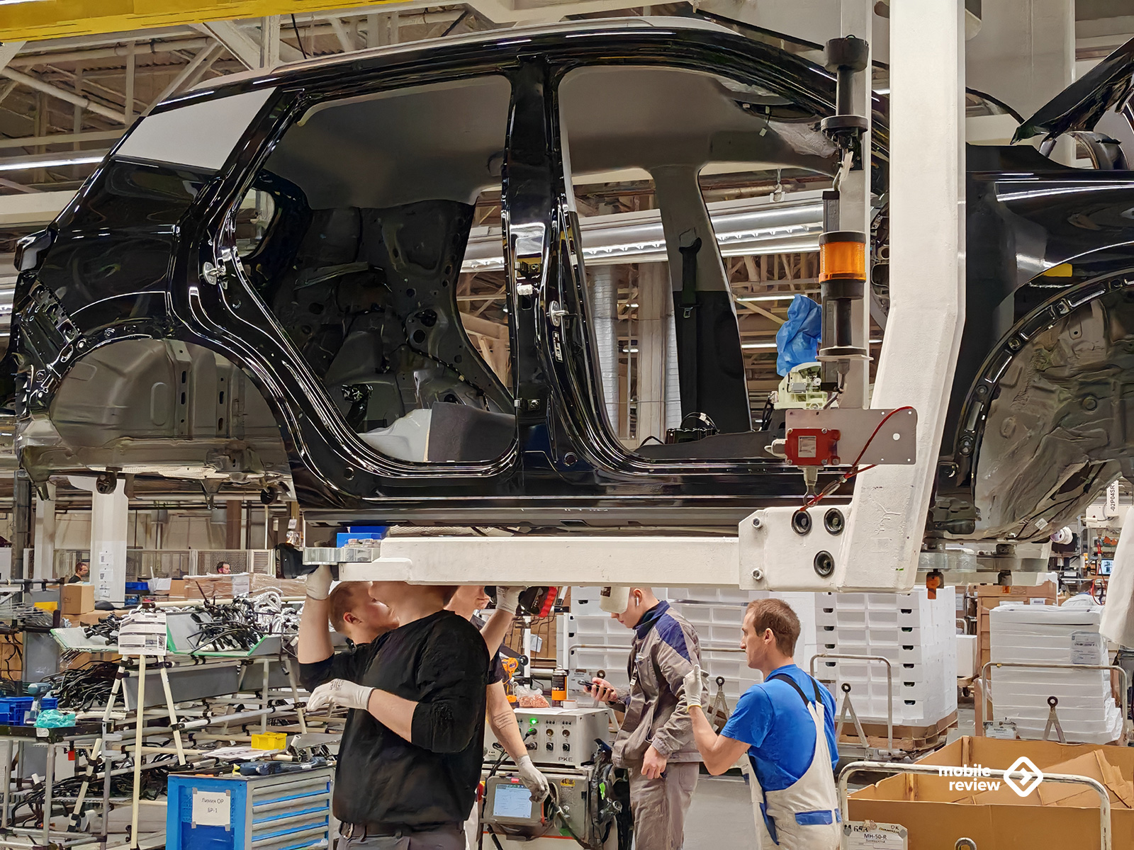 Автомобильный завод в Калуге рассчитан на выпуск 194 000 автомобилей в год при трехсменном графике работы, 220 рабочих дней. Но на данном этапе производство осуществляется не в полную силу, на заводе работает только две смены. На площадке “АГР Холдинг” на данный момент выпускается три модели кроссоверов Tenet (T4, T7 и T8), правда, на момент посещения площадки производство флагманской модели было поставлено на паузу, как нам сказали, для модернизации процесса.