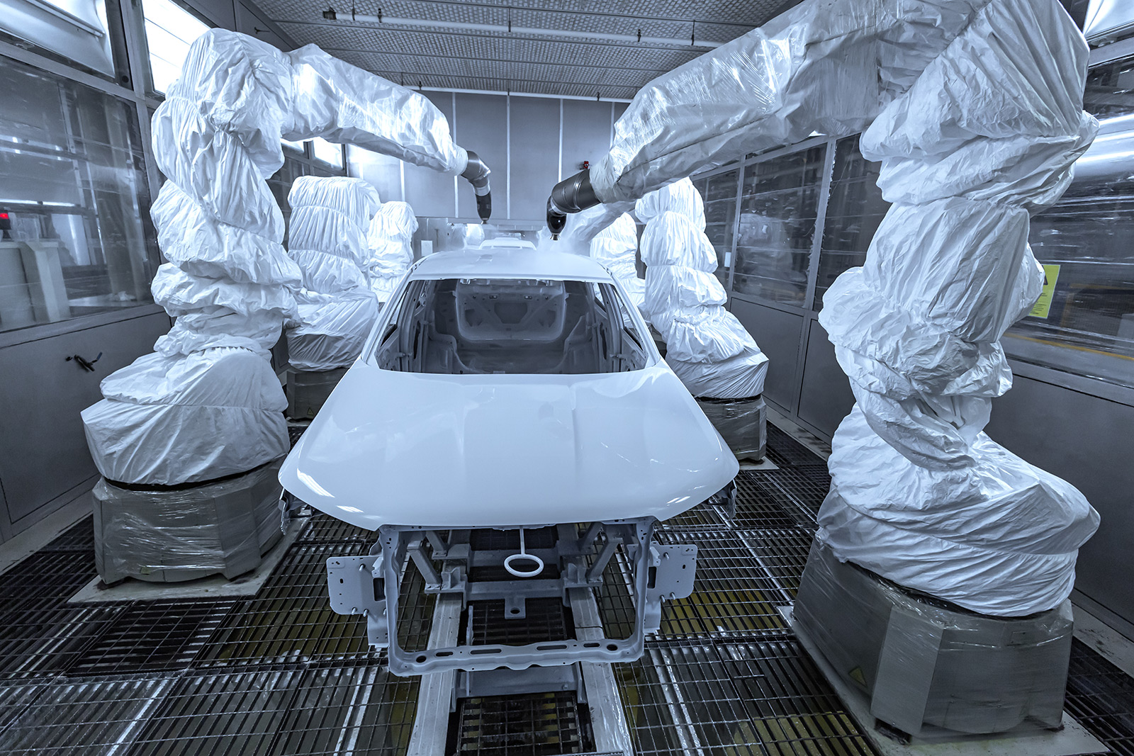 После сушки при температуре до 200 градусов и герметизации сварных и вальцовочных швов с использованием PVC-материалов кузова поступают на полностью автоматическую линию окраски. Роботы не только окрашивают внешние элементы кузова, но и внутренние, что обеспечивает стабильно высокое качество окраски каждой детали. Несмотря на автоматизацию процесса, здесь также существует свой контроль качества, дабы исключить производственный брак.
