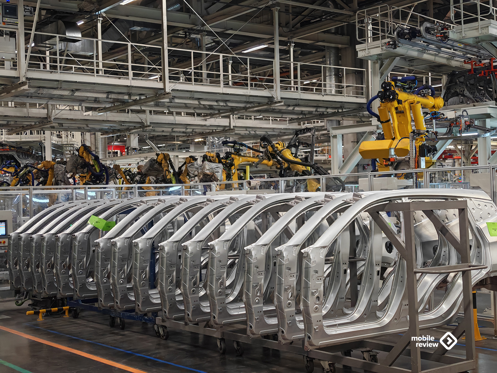 К сожалению, на данном этапе на заводе нет своего штамповочного производства, так что кузовные элементы поступают сюда уже в готовом виде. Полученные детали встают на полностью автоматическую линию, где, собственно, и происходит сборка, а точнее, сварка кузова.