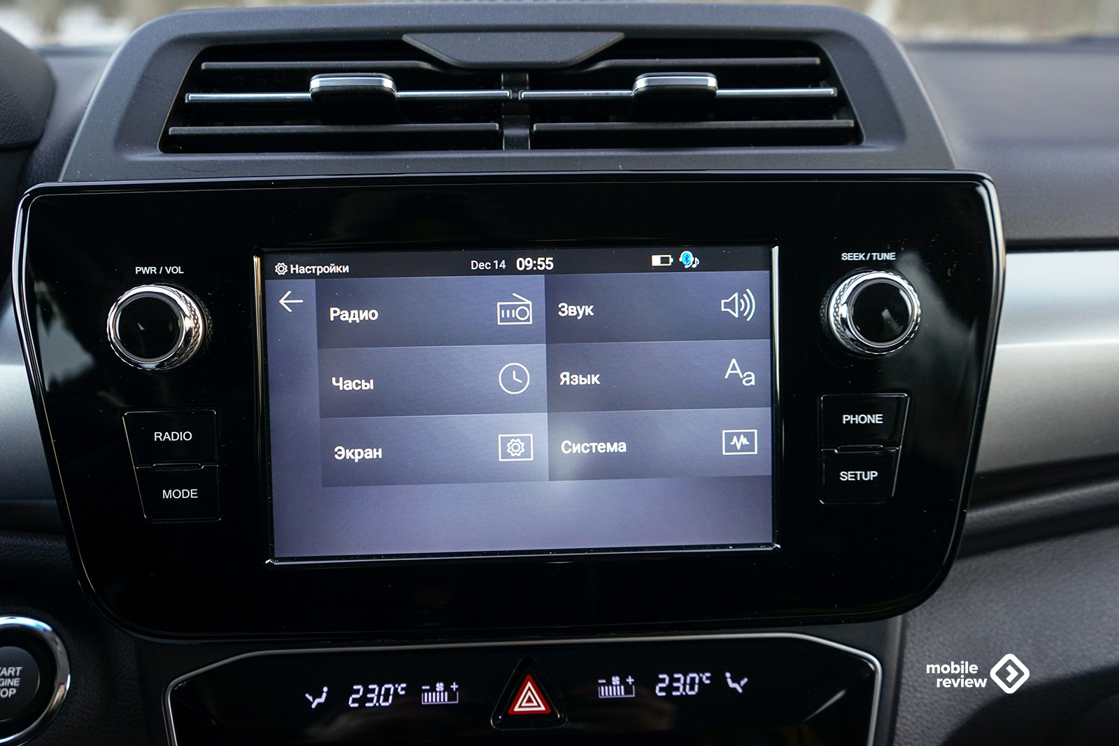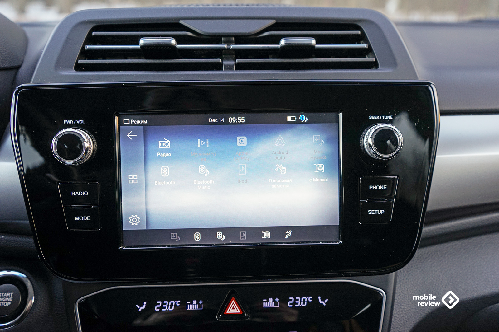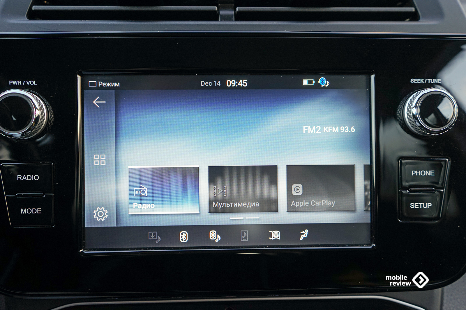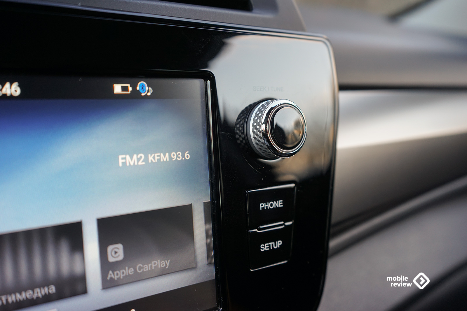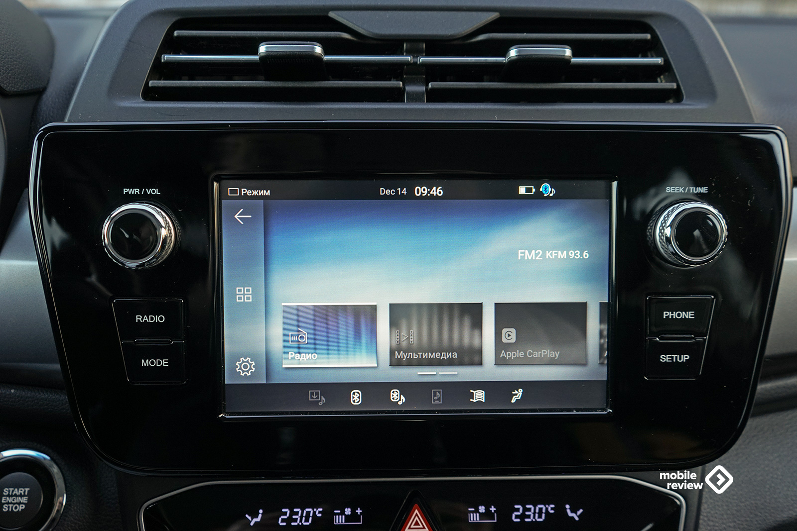 Медиасистема с 8-дюймовым сенсорным экраном, установленная в кроссовер, довольно простенькая, да и сам IPS-дисплей не лучшего качества, ему не хватает яркости и контрастности. Несмотря на это, мультимедиа уже “из коробки” умеет работать с протоколами Android Auto и Apple CarPlay, пусть только по проводу, но все потребности пользователя можно считать закрытыми.