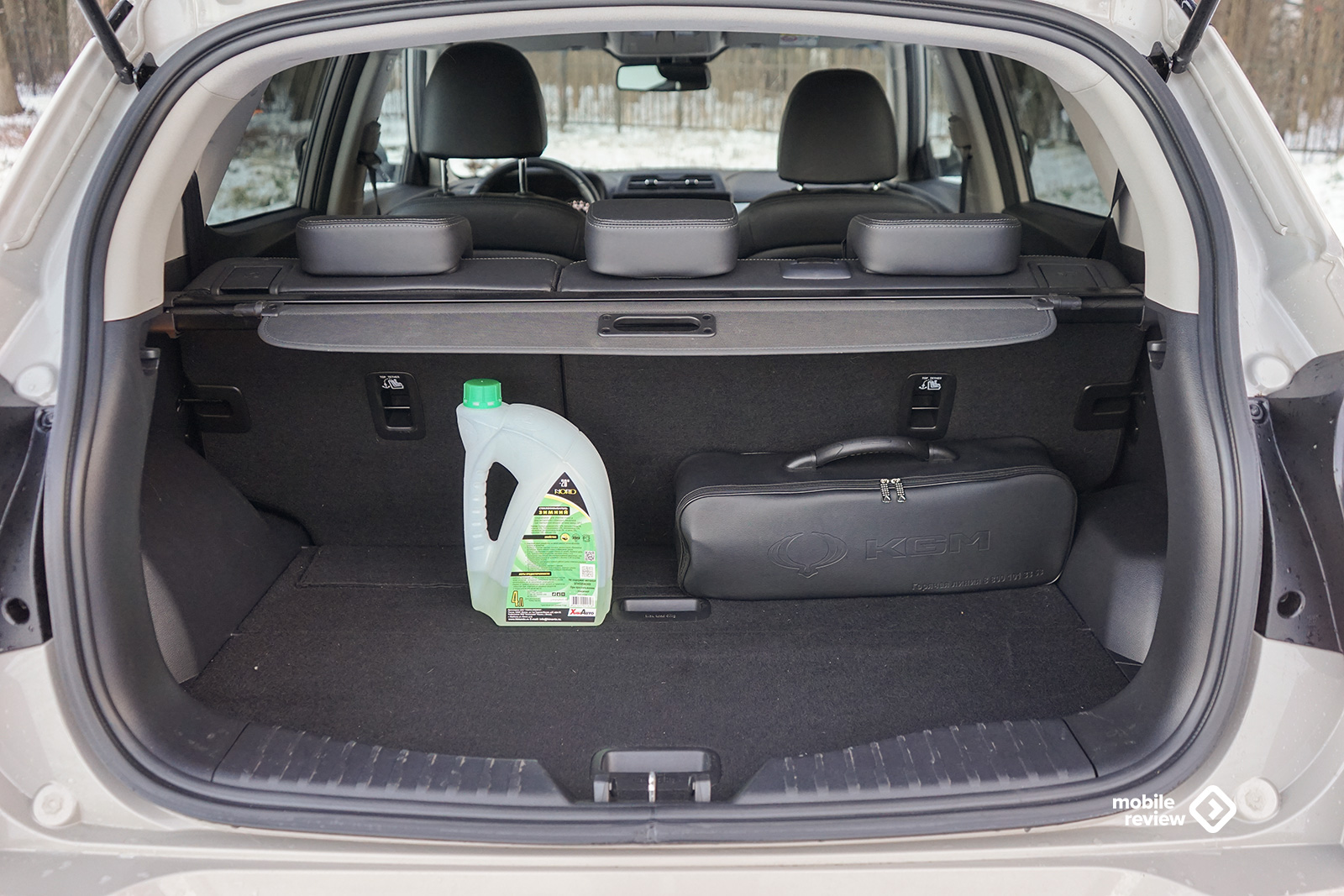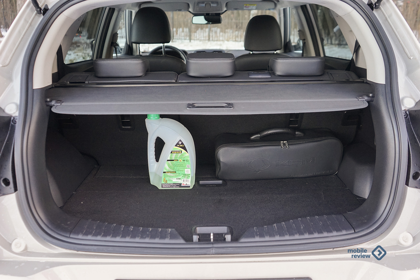 В целом, сложности с задним рядом и понятны, автомобиль не очень большой по размерам: 4 255 х 1 810 х 1 620 мм, колесная база — 2 600 мм. Плюс инженеры отдали полезное пространство салона под багажник, который для городского кроссовера составляет вполне приличные 423 литра, а если сложить из салона по отдельности спинки сидений второго ряда, которые образуют ровный пол, то выйдет и вовсе 1440 литров. В подполье багажника скрывается докатка, плюс там есть довольно много дополнительного места, что позволяет спрятать какую-то мелочь. Да, дверь багажного отделения здесь без электропривода, так что все действия придется выполнять вручную.