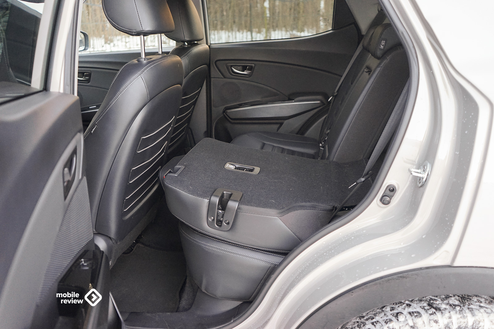 С ростом 187 см сам за собой я сажусь с огромным трудом, места явно не хватает не только в коленях, но и в ногах. Плюс посадка назад не очень удобная из-за узкого дверного проема, который ещё и заставляет вас переваливаться через колесную арку. Людям же невысокого роста и детям сзади вполне неплохо, а для удобства по центру есть откидной подлокотник с подстаканниками.