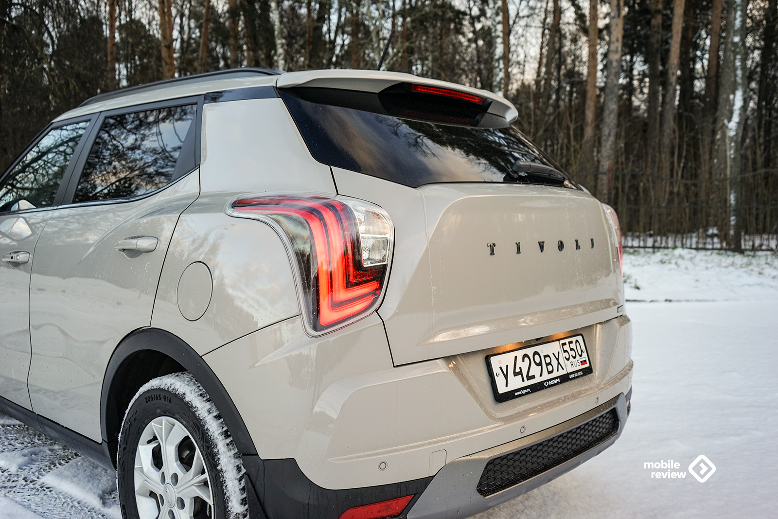 С учетом того, что модель не менялась на протяжении уже 6 лет, понятно, что на сегодня дизайн KGM Tivoli выглядит малость устаревшим. Несмотря на это, на мой вкус, машина довольно симпатичная, а с некоторых ракурсов немного забавная. Так, у неё сильно вытянутый капот с классическими объёмными высоко поставленными фарами, которые заточены под галогеновый свет, но в максимальной комплектации он светодиодный. Последний весьма неплохо показывает себя в ночное время. Основная часть кузова автомобиля высокая и слегка угловатая, так что в профиль Tivoli чем-то похож на Hyundai Creta первого поколения. На корме огромные по современным меркам фонари с галогенками и светодиодами внутри. Но внимание здесь больше оттягивает на себя необычная выштамповка на двери багажника, которая напоминает кожух для запасного колеса. Нечто подобное недавно мы видели у Haval H3. Но если там это был аэродинамический элемент, так как производитель отказался от щетки заднего стекла, то в случае с корейцем это просто дизайнерское решение, а щетка, пусть и маленькая, у KGM сзади есть. Имеется у кроссовера и ещё несколько дизайнерских штрихов вроде цветных вставок на передней части, а те, что на капоте, ещё и сквозные, обеспечивают дополнительное охлаждение. А также необычно видеть спереди название модели, которое обычно производители размещают на багажнике.