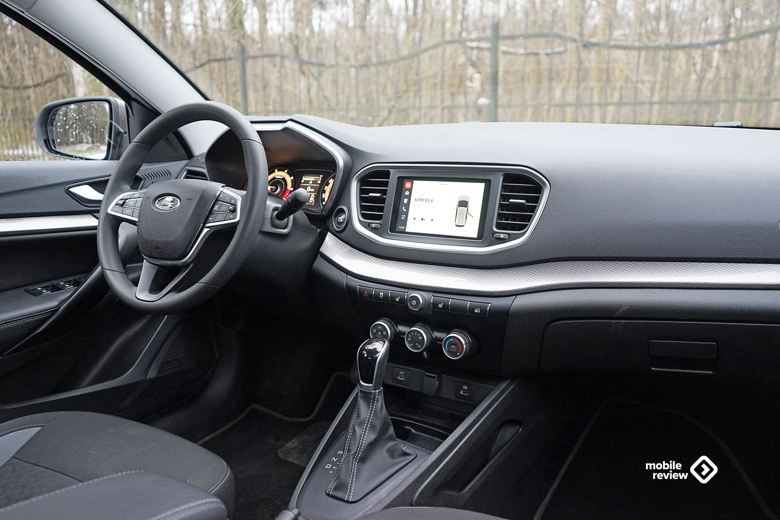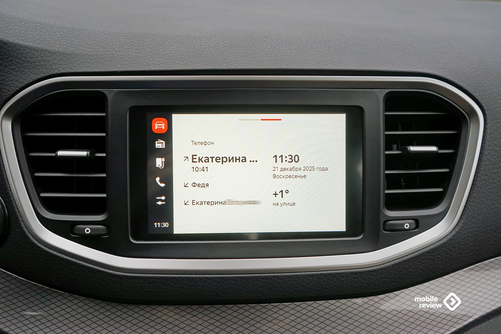 В отличие от комплектации Comfort, в Life имеется центральный подлокотник с боксом для хранения вещей, а кроме этого, в машине появляется мультимедиа Lada EnjoY с 7-дюймовым IPS-дисплеем. Кстати, последняя весьма неплоха, за исключением размеров экрана и звука (чего ожидать всего от 4 динамиков), а главное, в ней имеется поддержка Android Auto и Apple CarPlay, только по проводу, но и это хорошо. В остальном система предлагает стандартные опции в виде подключения телефонов по Bluetooth и проигрывания музыки с внешних источников и радио. За работу громкой связи отвечает вынесенный на потолок над водителем внешний микрофон, который хорошо справляется со своими обязанностями. А для подключения устройств предусмотрено два разъема USB-A в передней части салона.