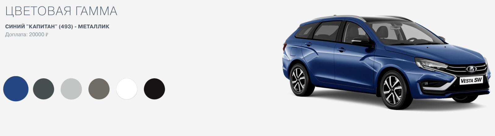 На сегодня «АвтоВАЗ» предлагает шесть цветовых решений для Lada Vesta SW, из которых только белый и черный бесплатные, а за остальные надо доплатить 20 000 рублей.