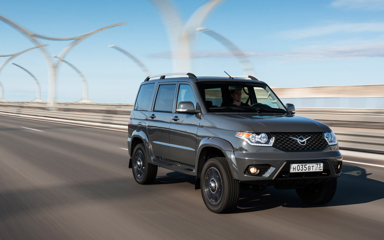 Не будем сюда включат классический «уазик» «Хантер», но вот «Патриот» рассмотреть вполне можно. Модель на сегодня предлагается с 2.7-литровым двигателем ЗМЗ 409051 мощностью 149 л.с., который агрегатируется с пятиступенчатой механикой. Габариты внедорожника — 4785 x 1900 x 2005 мм, колесная база — 2760 мм, а дорожный просвет — 210 мм.