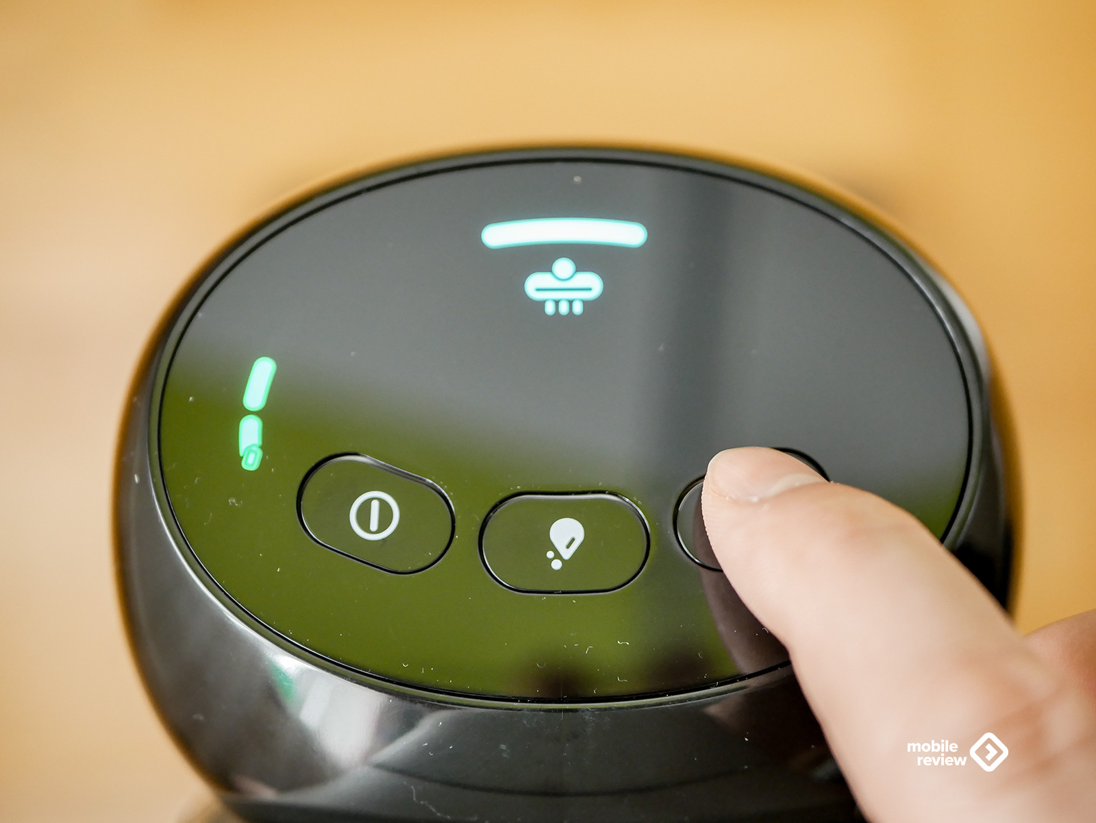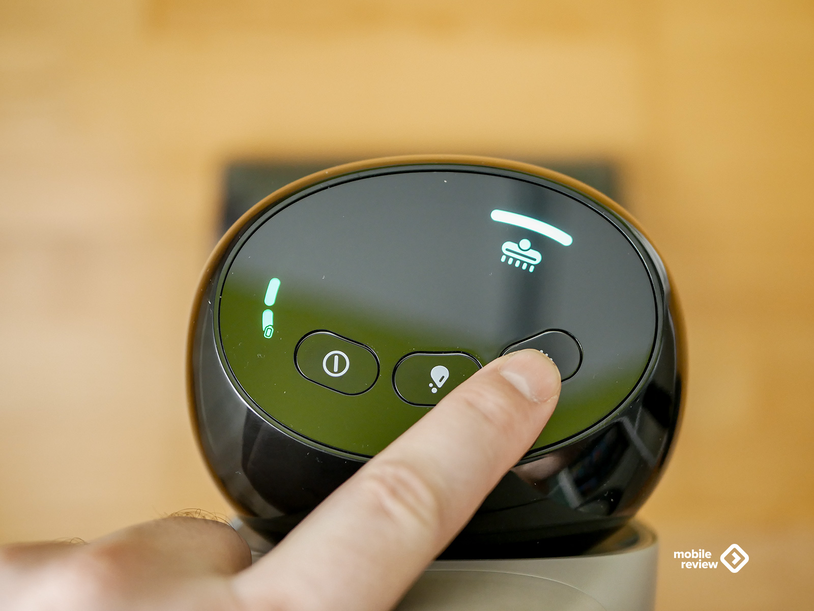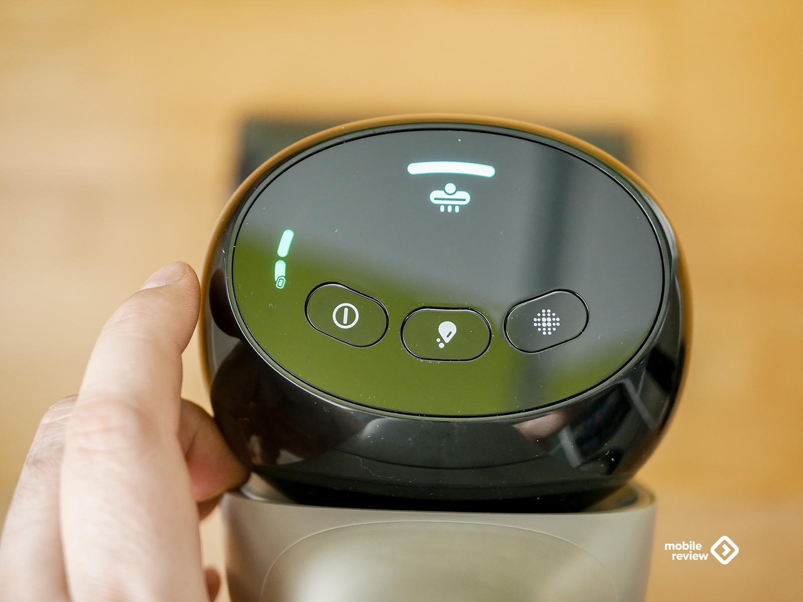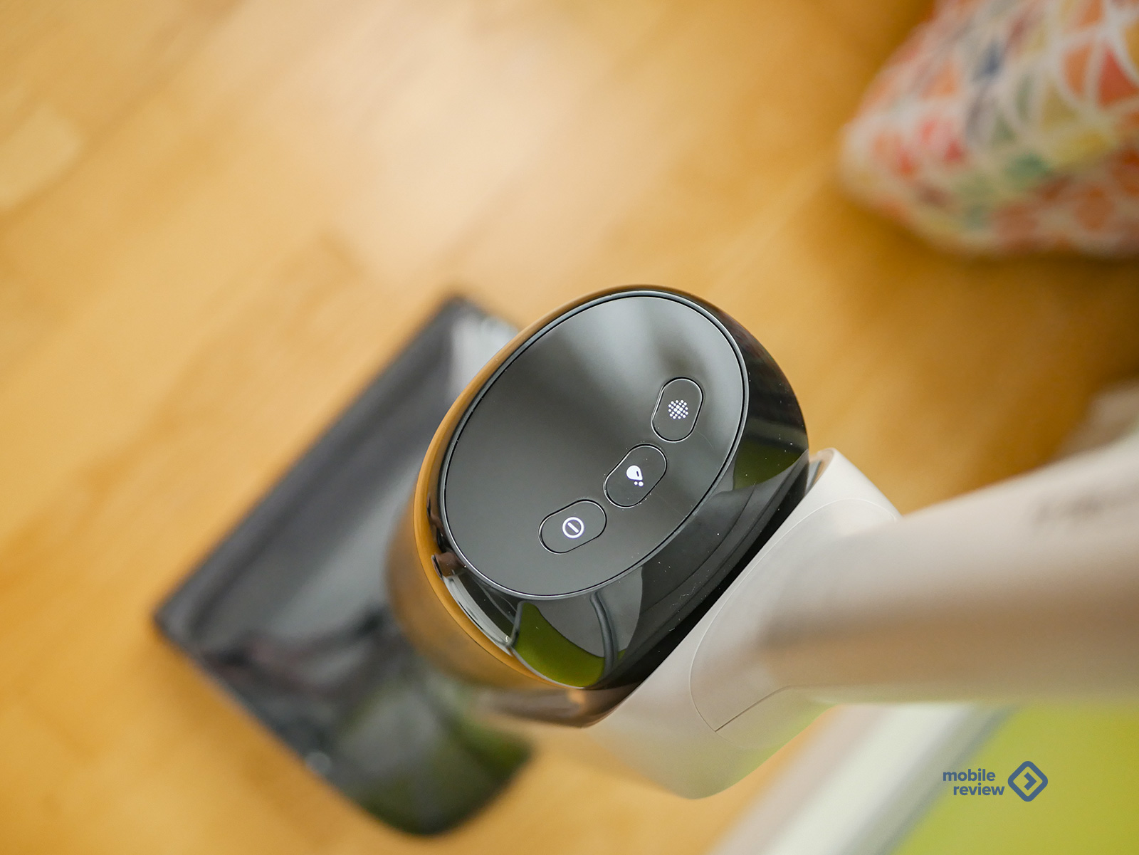 Начну с управления. На верхней части корпуса три механические кнопки и небольшой цветной LED-дисплей. За это решение отдельный респект дизайнерам. Почему? Потому что сенсорные панели в пылесосах — это зло. Особенно когда руки мокрые или в перчатках. А тут все по-взрослому: нажал, почувствовал отклик, поехал. На дисплее отображается режим уборки, индикация заряда (горит или мигает), грязной воды, сигнал самоочистки и роликовой щетки.