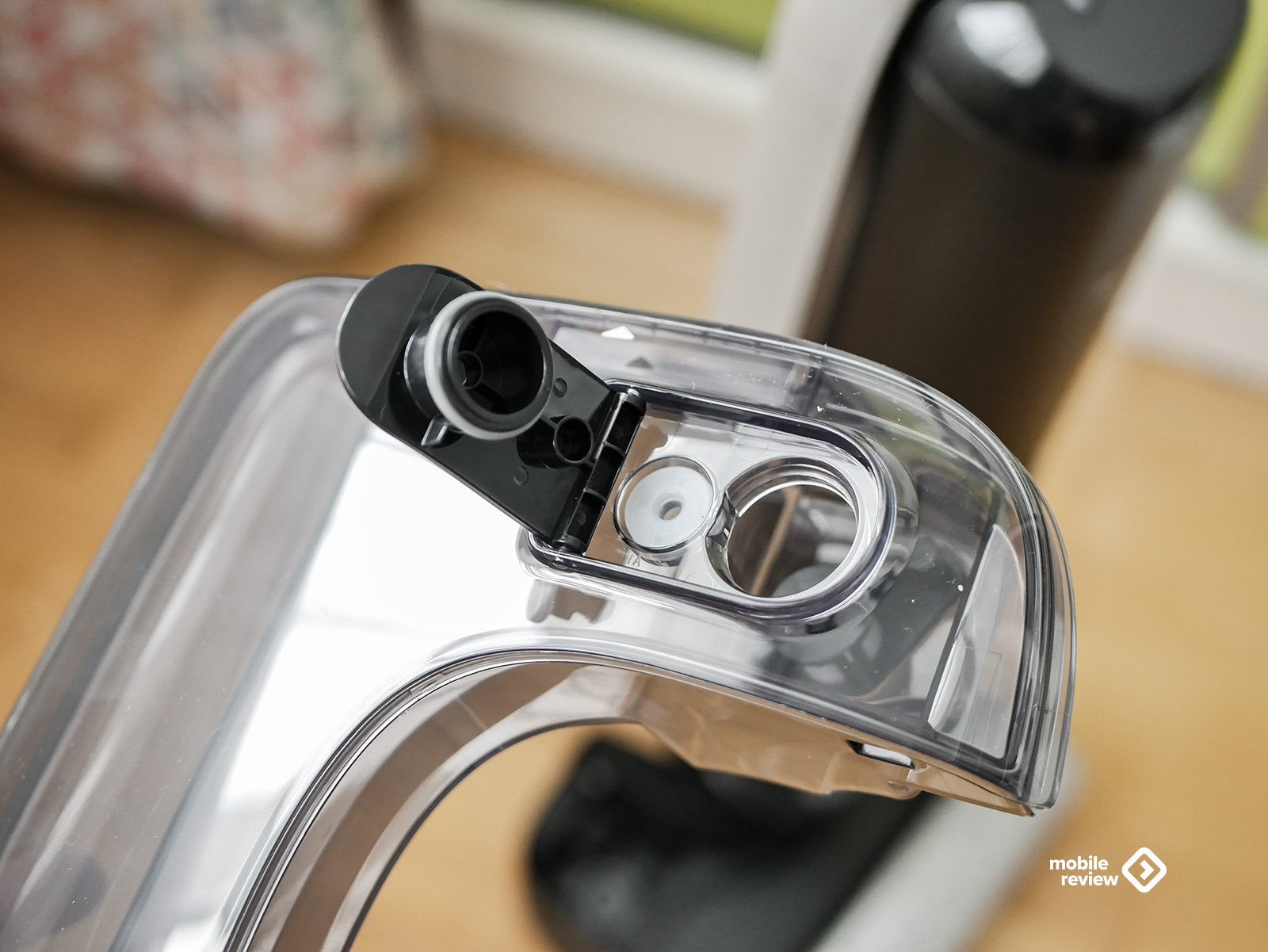 Начну с контейнера для грязной воды. Он расположен снизу, под основным блоком, и сделан из прозрачного глянцевого пластика. Объем — 0,8 литра. Этого достаточно, чтобы убрать квартиру без «ой, все, надо сливать». Но главное – даже не объем, а конструкция. Контейнер разбирается на две части: верхняя вкладывается в нижнюю колбу. Внутри есть прорезиненные элементы, откидные крышечки — все продумано так, чтобы вы могли залезть в каждый угол и реально отмыть, а не просто сполоснуть под краном для галочки. Это уровень заботы, который обычно оставляют на потом, а здесь сделали сразу.
