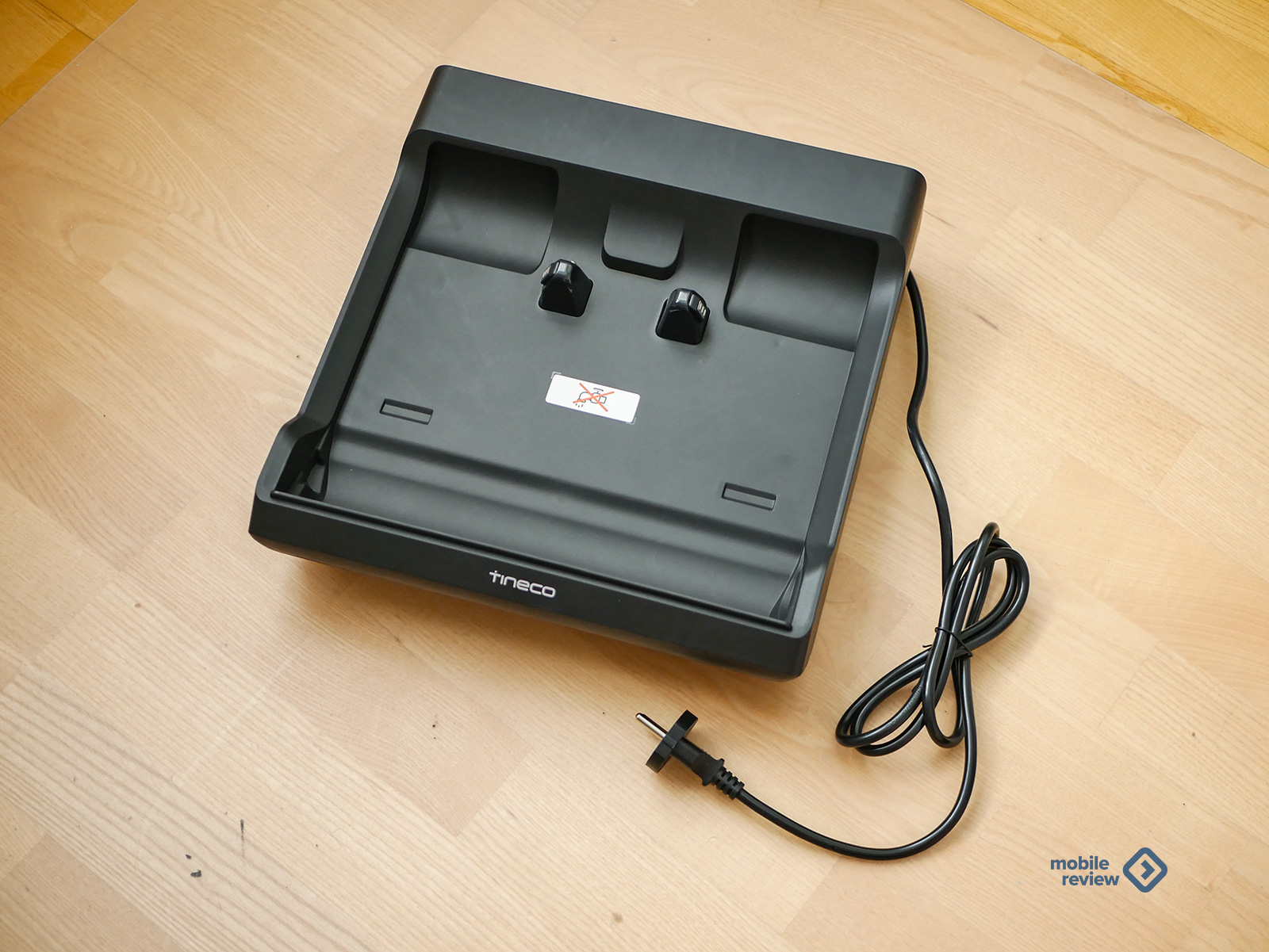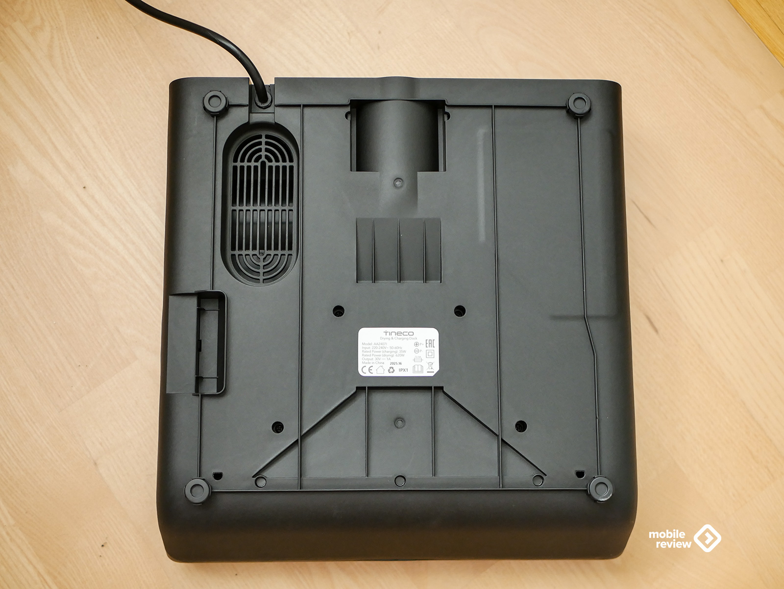 Дальше достаем базу. Она черная, строгая, из качественного матового пластика. Мне кажется, это удачное решение: на такой поверхности пыль почти незаметна. База устойчивая: четыре прорезиненные ножки держат мертвой хваткой, не скользят даже на ламинате. Кабель питания уже встроен, длина – примерно полтора метра. Для типовой квартиры хватает за глаза.