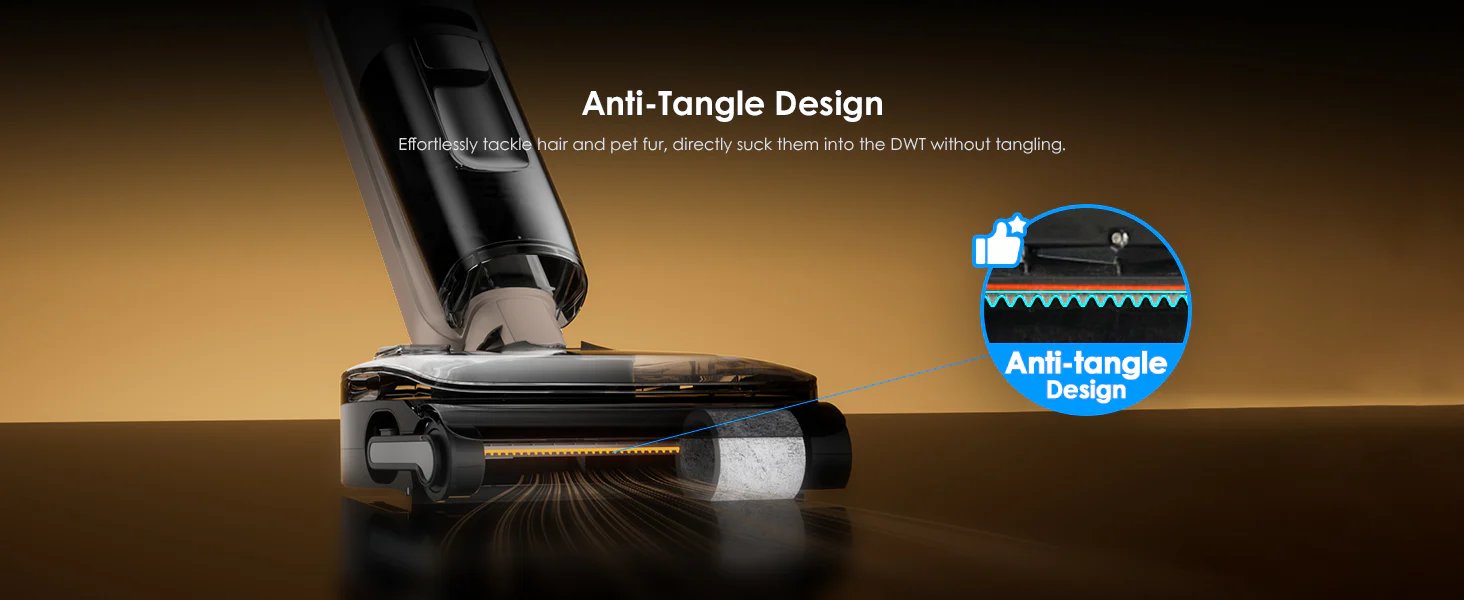 Кстати, про щетку. Здесь стоит система анти-запутывания Anti-Tangle. Если у вас дома есть кто-то с длинными волосами или вы живете с котом, который считает линьку искусством, вы поймете. Скребки плотно прилегают к валику и срезают волосы прямо во время уборки. Ничего не наматывается, не жует.