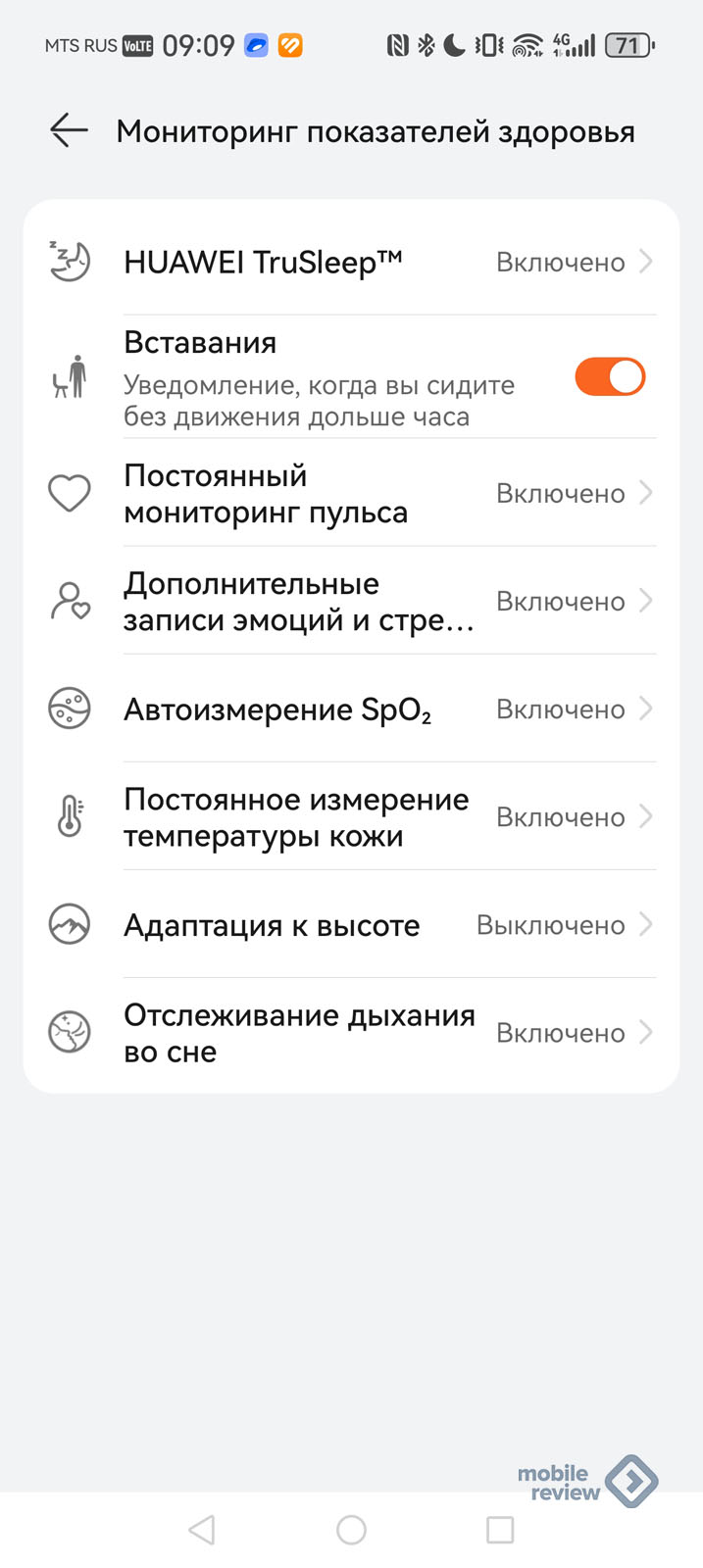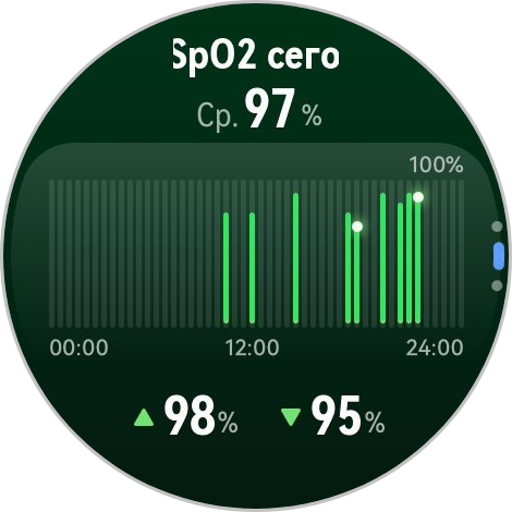 Вы можете измерить SpO2, насыщенность крови кислородом. Показатель важный, его можно измерять вручную, а можно установить автоматическое измерение, последнее происходит в состоянии покоя. Например, в машине когда вас потряхивает, такого замера не будет.