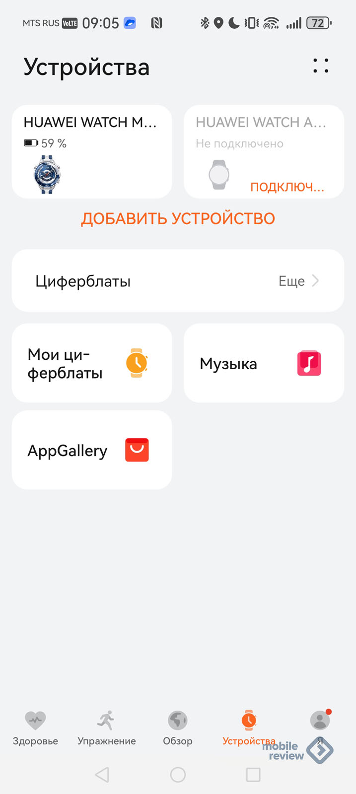 Не самое очевидное приложение для синхронизации часов, оно называется “Здоровье”, а сами часы можно подключить как к iPhone (iOS 13 и выше), так и к Android (от 13-й версии и выше), помимо родных устройств. Все управление часами осуществляется через вкладку “Устройства”, тут нет ничего сложного.