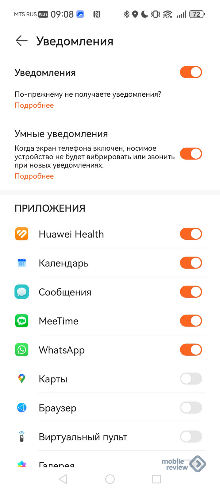 Уведомления — пожалуй, самый интересный раздел в настройках. Первое, что нужно знать: часы получают уведомления только из шторки, если там нет ничего, то на часах ничего и не будет. Из приватных разделов телефона (например, KNOX на Samsung или приватного пространства Huawei) уведомлений не будет. По умолчанию включены уведомления для календаря и сообщения, помимо приложения “Здоровье”. Вы можете включить уведомления для других приложений, я это сделал для Telegram. Если в Telegram стоит дополнительная защита и контент скрыт, то вы не увидите его на часах.