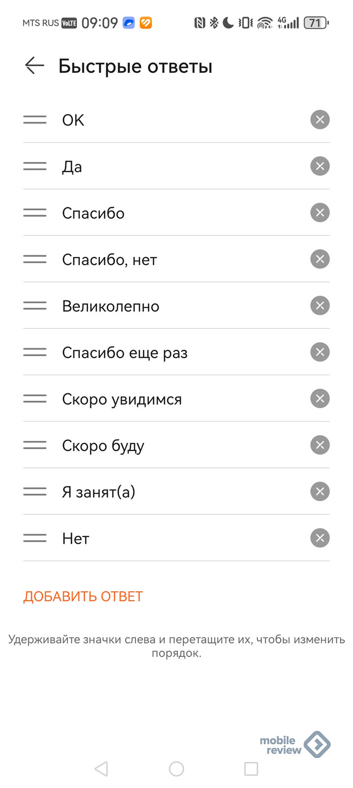 Быстрые ответы — шаблоны ответов, которыми можно отвечать на те же звонки.