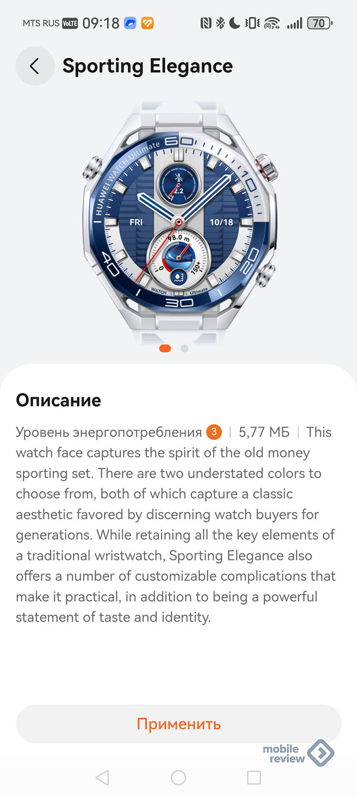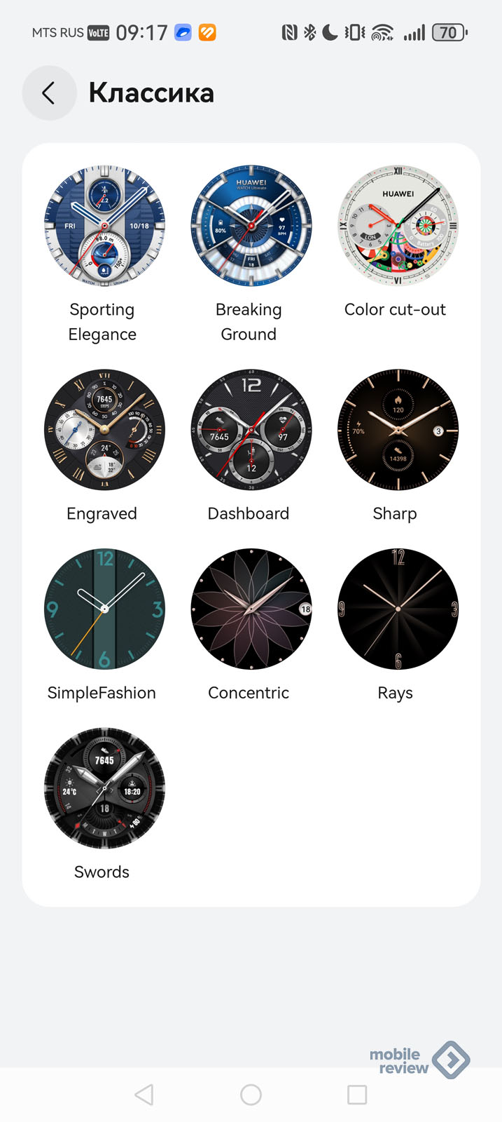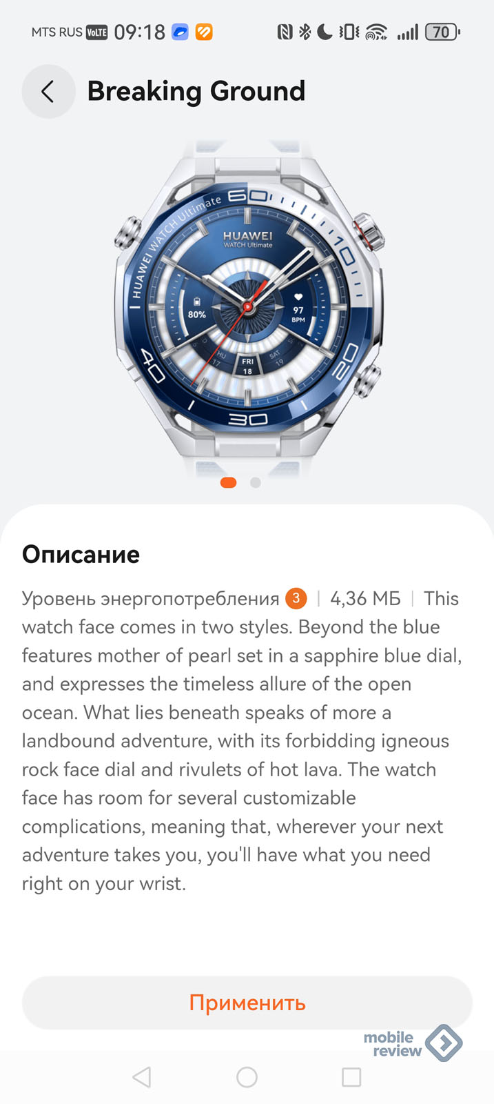 Заставки от Huawei для часов разнообразны, по умолчанию стоят те, где написано название продукта. Выглядит это своеобразно, кому-то может не понравиться.