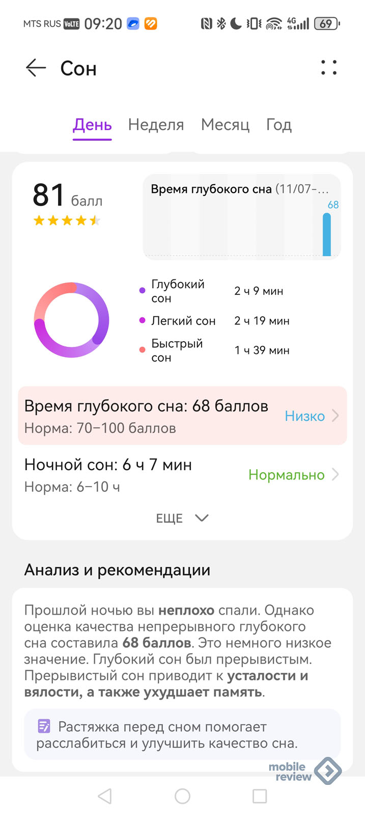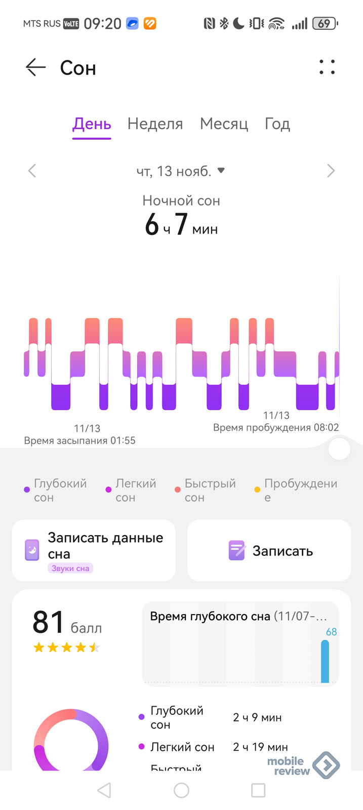 Измерение сна учитывает его фазы, так что тут можно в подробностях посмотреть все о себе.