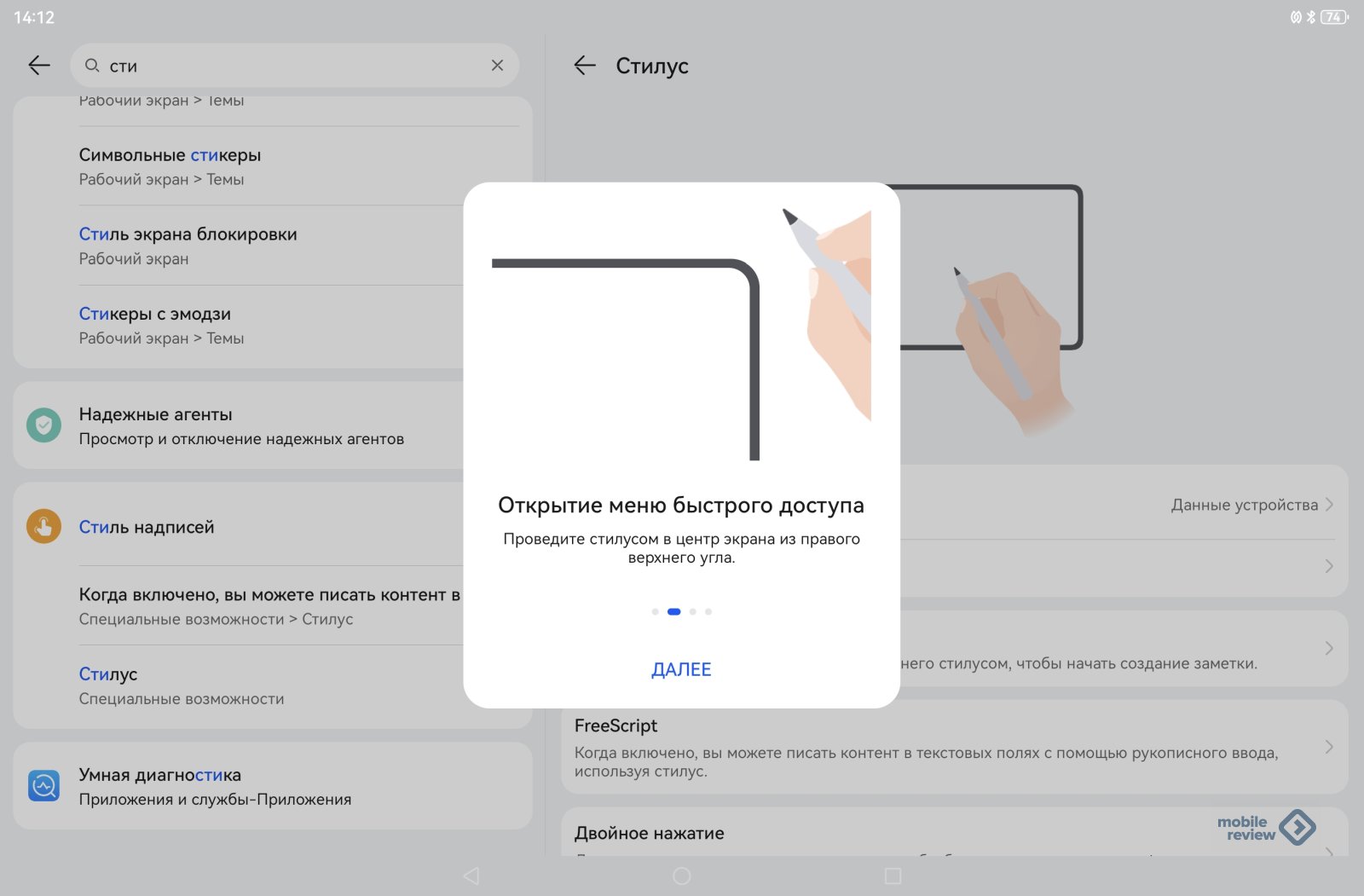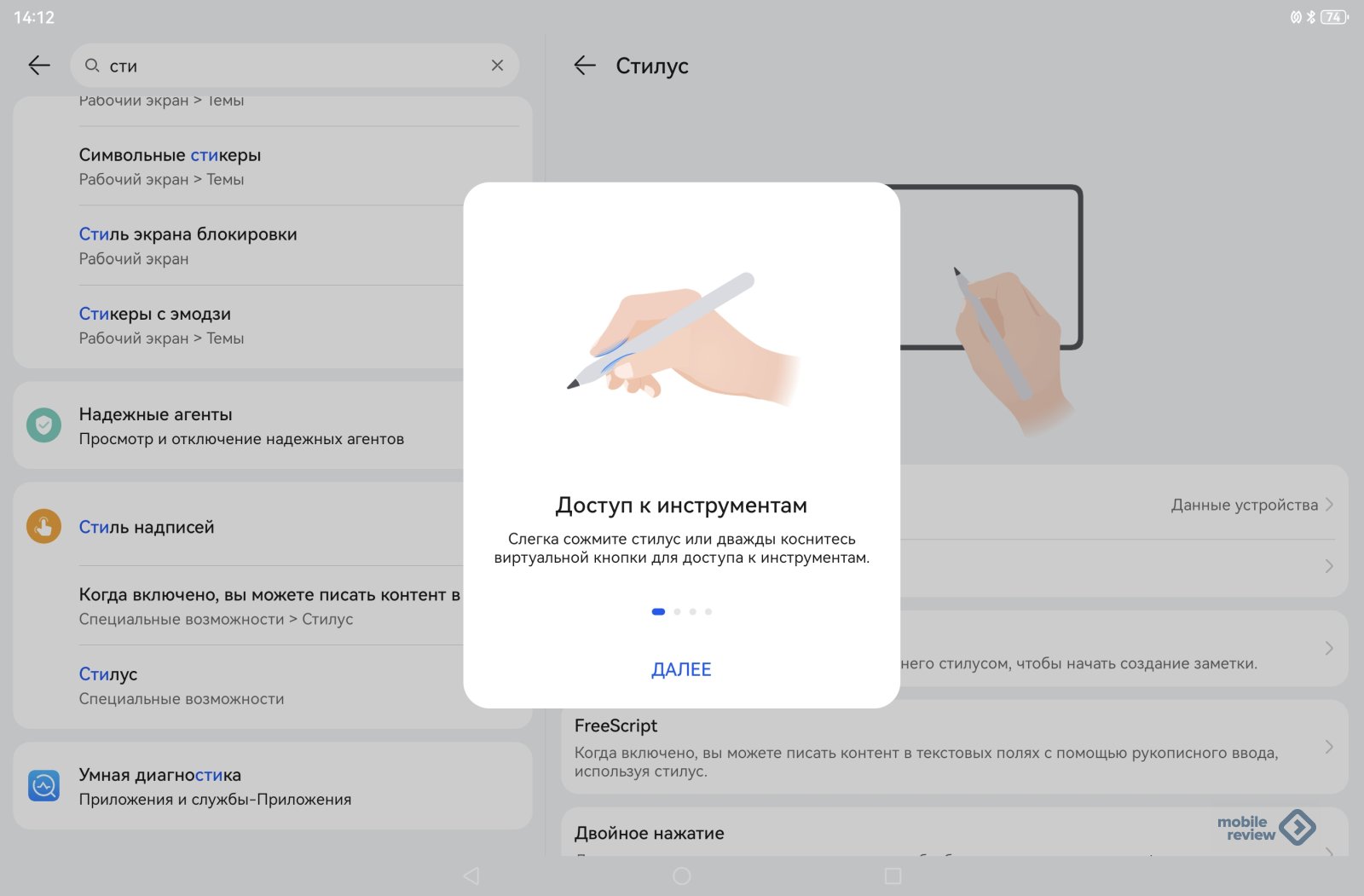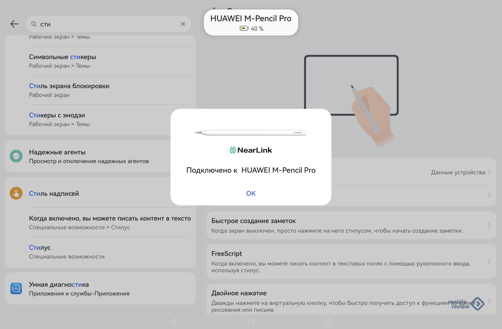 Первый планшет, поддерживающий M-Pencil Pro, — именно MatePad 12 X 2025 года, позднее добавятся другие. В меню стилуса есть настройка клавиши в торце (да, тут появилась кнопка), вы можете ее зажать для синхронизации с устройством, если таковой не случилось (тут NearLink). Но в настройках можно просто указать вызов нужного вам приложения при нажатии на клавишу.