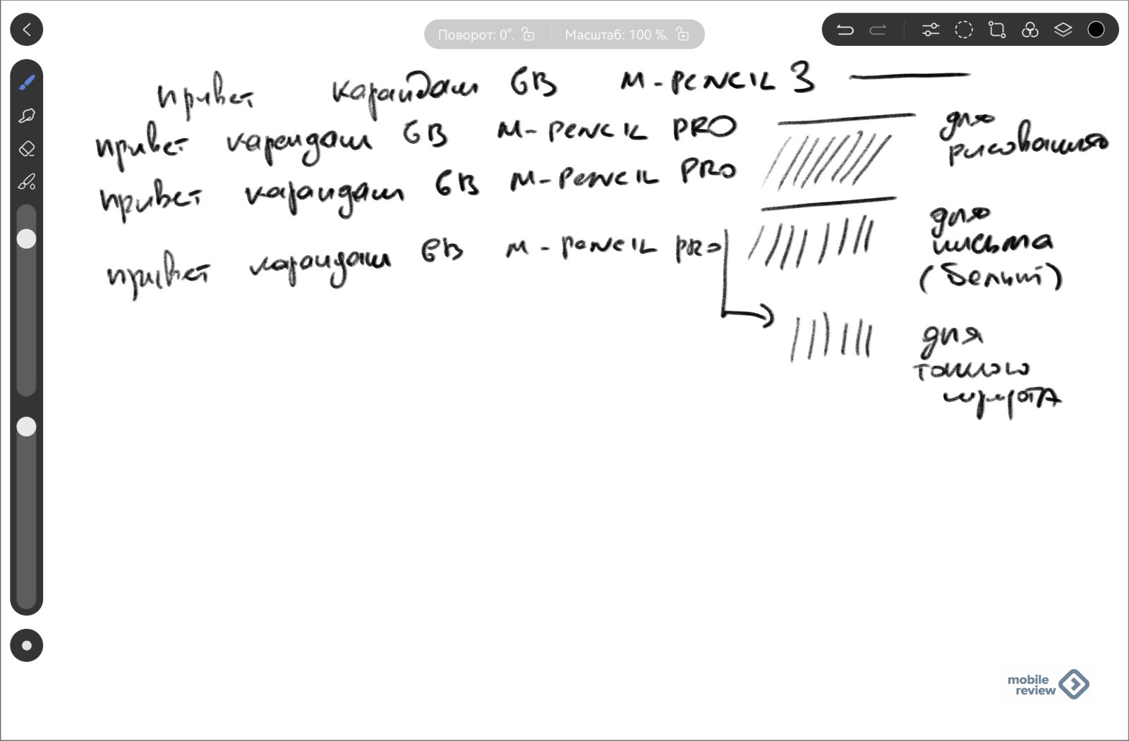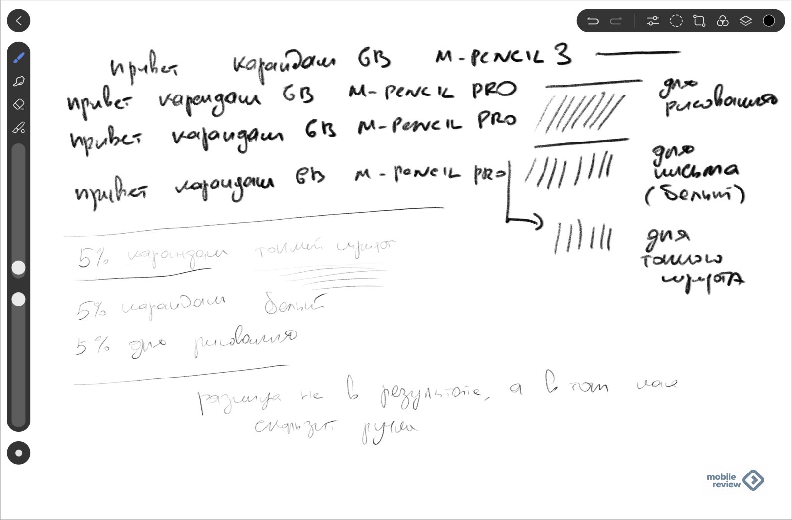 На скриншоте вы не увидите никаких различий между наконечниками, мой почерк остается одинаковым, толщина линий определяется софтом и более-менее одинакова. Так в чем же различие? Оно кроется в том, насколько меняется сцепление ручки с экраном, у вас разные впечатления при одинаковом весе и размере стилуса. Для рисования это некий карандаш, в то время как когда вы пишете, чувствуется, что у вас ручка и перо. Именно в такой игре с вашим сознанием и заключается смысл смены наконечников, штука очень хорошая и полезная.
