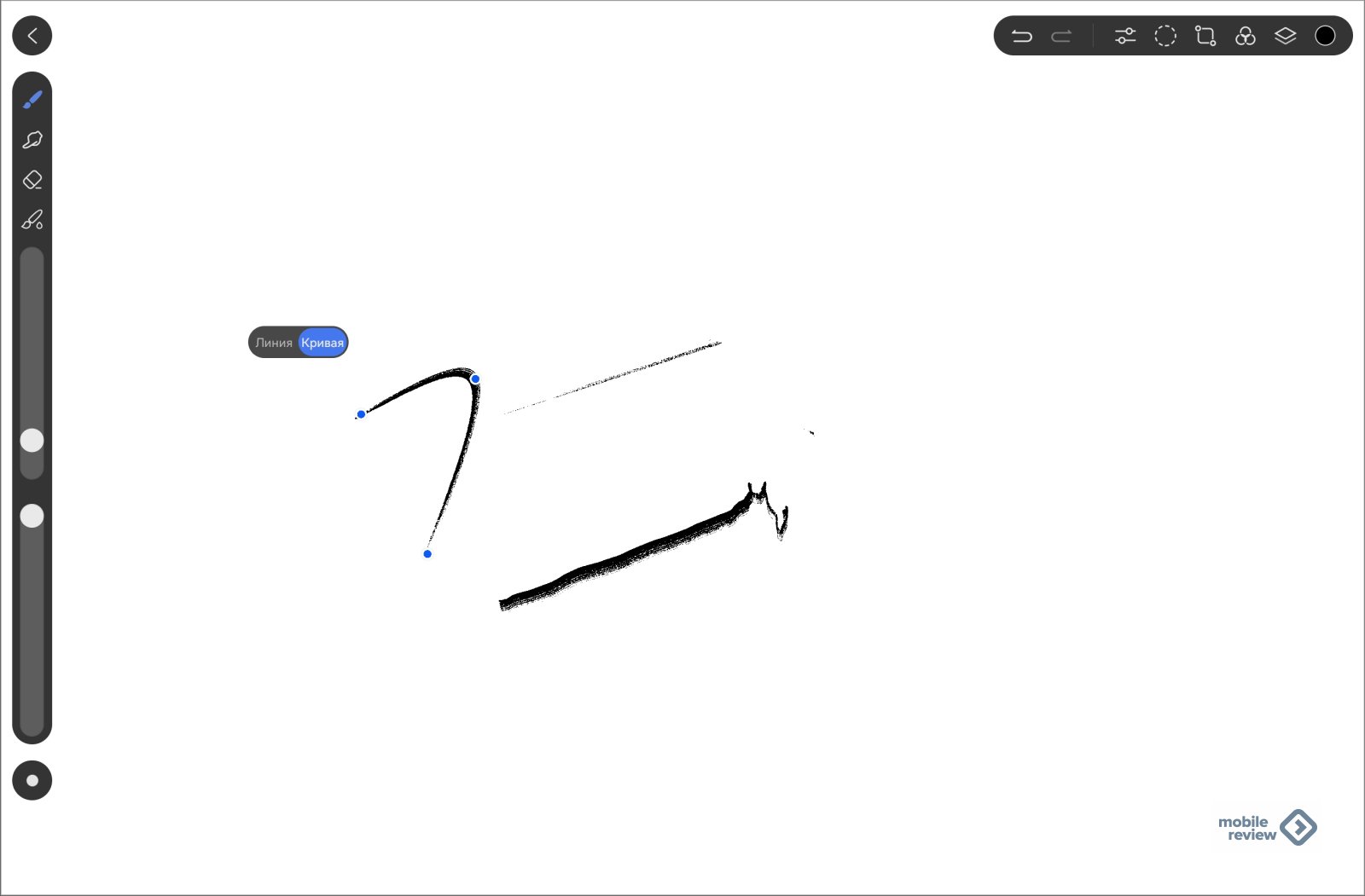 В приложении GoPaint для ручки появился жест поворота, для некоторых кистей вы можете использовать его, чтобы контролировать толщину штриха. Но мне больше всего нравится то, что поворотом можно изгибать штрих, а потом по точкам вытягивать его так, как вам нужно.