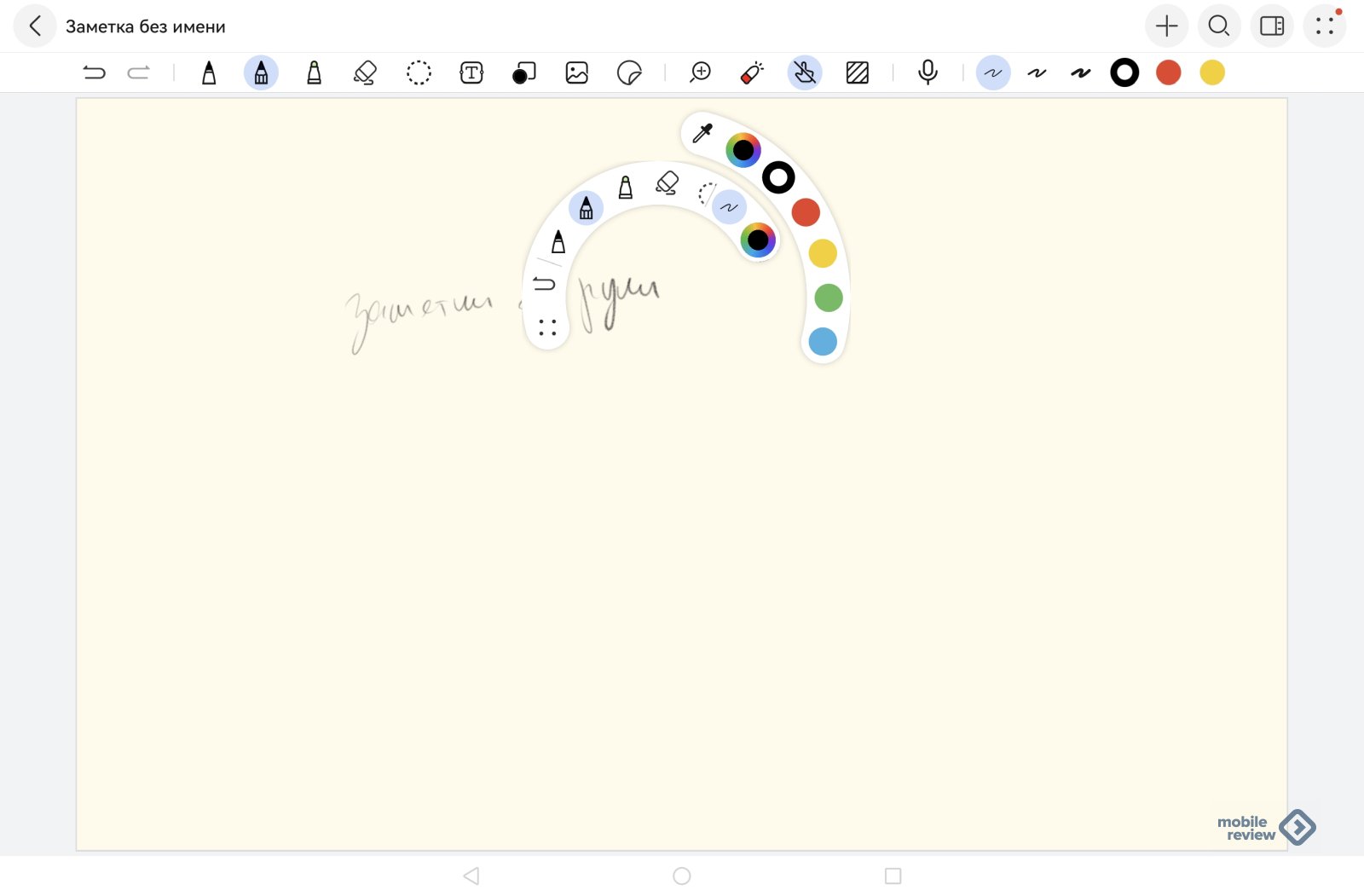 По нажатию на стилус во время работы перед вами появляется контекстное меню, оно напрямую зависит от приложения, в котором вы работаете.