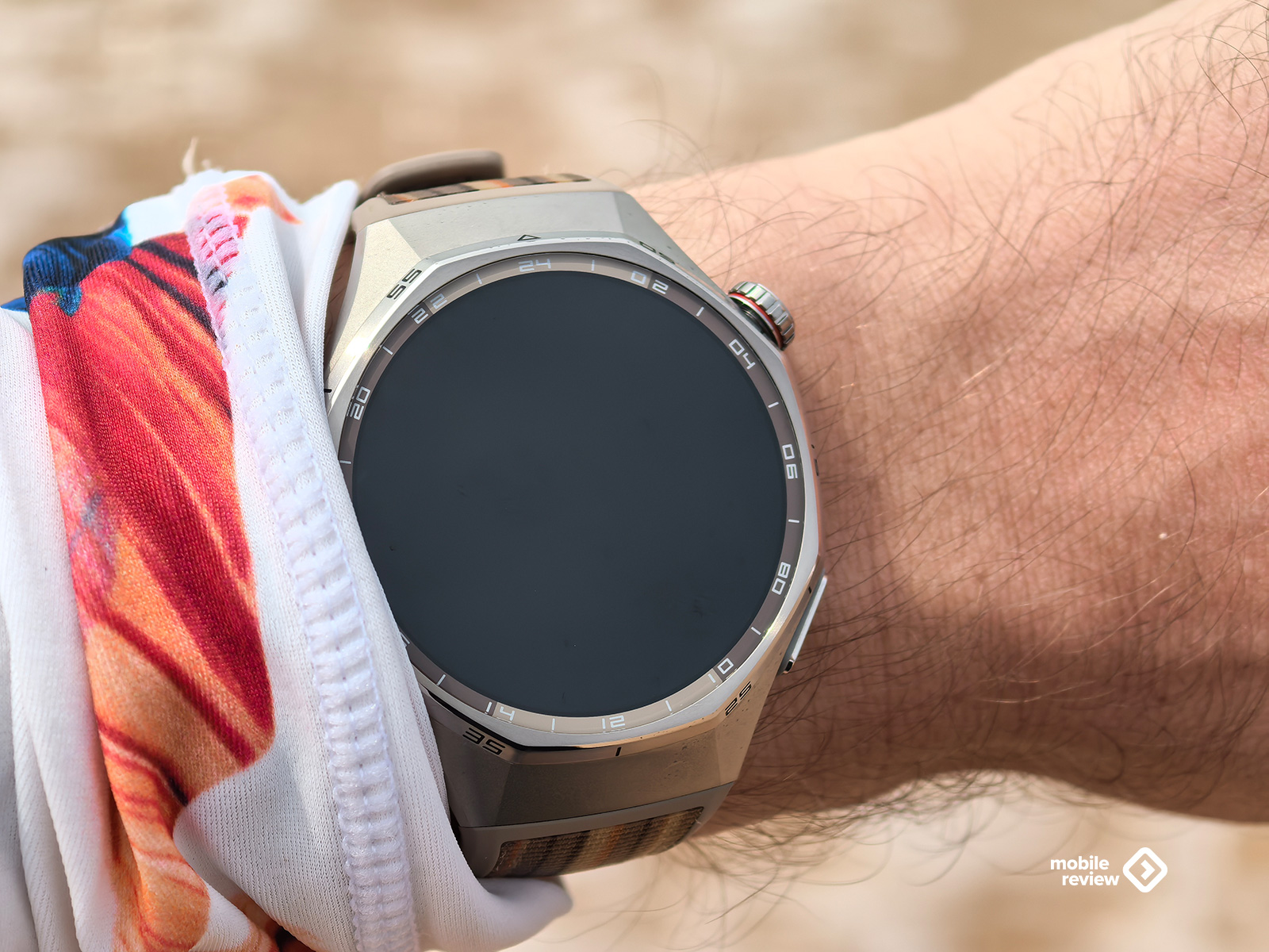 Для защиты дисплея используется сапфировое стекло. Оно отлично противостоит всем невзгодам. Часы постоянно контактировали с песком, задевал экраном о камни, когда лез в гору, — дисплей выглядит как новый.