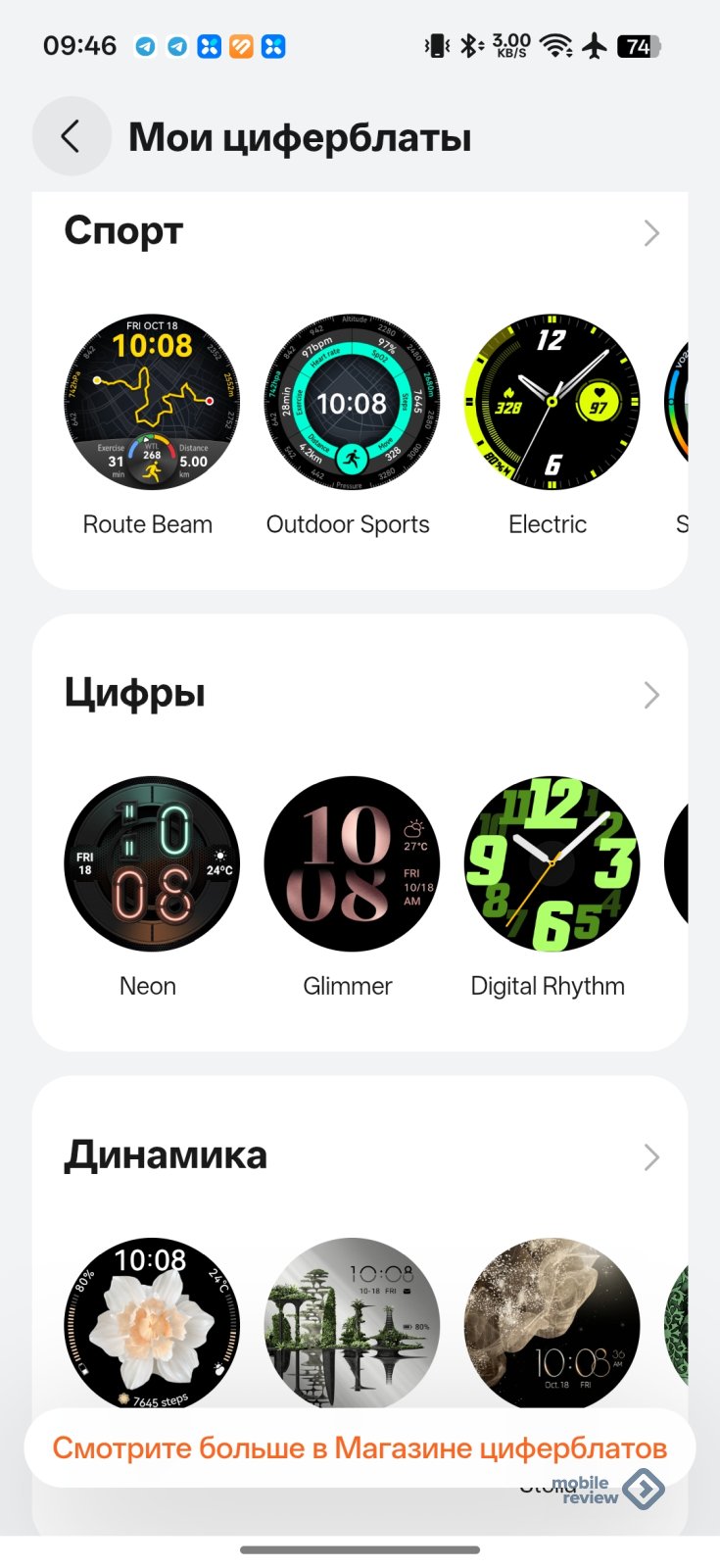 А вот предустановленные обои мне не понравились. Выглядят они стильно, но в ущерб функциональности. Все-такие если у меня умные часы, то хочется видеть все — от количества пройденных шагов до текущей высоты над уровнем моря. Разумеется, часы поддерживают смену циферблатов. В приложении на смартфоне есть целая галерея, написано, что доступно более 150 тысяч тем. Вот только большинство по-настоящему интересных дизайнов оказались платными. Цены разные: от 1 рублей до примерно 400 рублей.