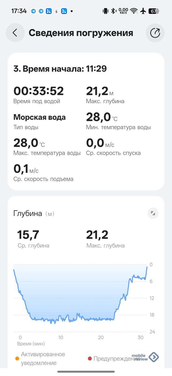 Однако, к сожалению, HUAWEI не доработала и часы не могут заменить компьютеры для дайвинга. Последние умеют делать две важные вещи. Во-первых, они напоминают про остановку безопасности. Когда поднимаешься с большой глубины, то на 3-5 метрах надо задержаться для декомпрессии. Компьютер напоминает, а также указывает расчетное время, сколько нужно провисеть. Во-вторых, дайвинг-компьютеры рассчитывают время между погружениями, которое надо провести на поверхности.