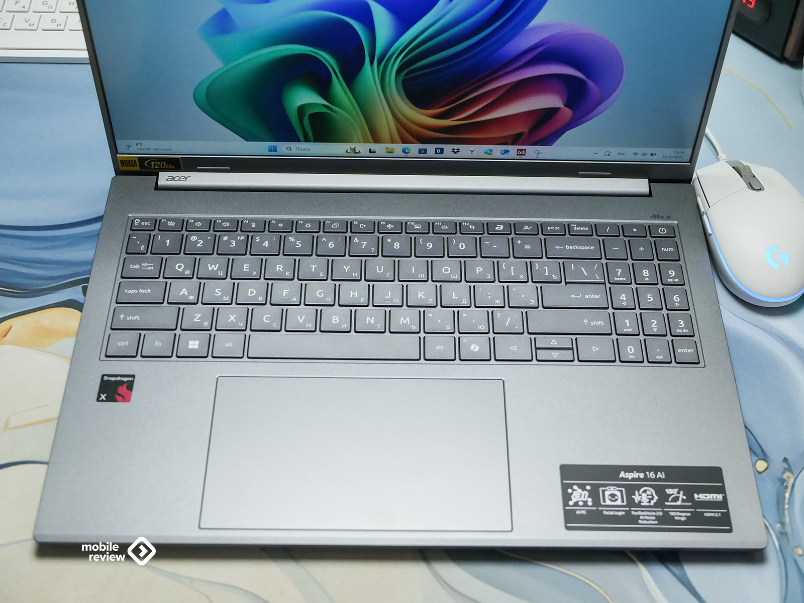 Главный вопрос при тестировании Acer Aspire 16 AI у меня был такой: а сможет ли он прожить приличное время на одном заряде с этим необычным процессором Qualcomm на архитектуре ARM? Результаты оказались довольно любопытными. Ноутбук реально может работать более 10 часов с офисными приложениями, но для этого придется немного понизить яркость экрана и переключить режим на низкую производительность. Как только включаете максимальную мощность, ситуация с точки зрения автономности аналогична обычному Windows-ноутбуку на x86/x64 — часы работы сокращаются до стандартных значений.