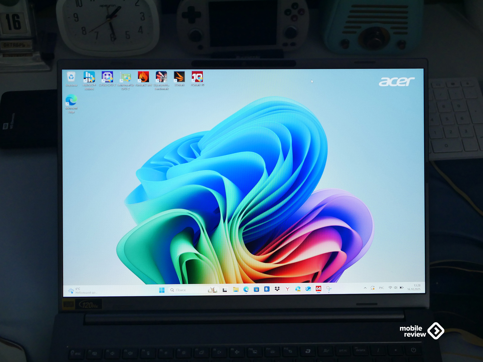 Но лично я считаю, что самое крутое в этом ноутбуке — это автономность. Aspire 16 AI спокойно держится около 10 часов при работе с офисными приложениями. Это, между прочим, почти вдвое больше, чем у большинства классических ноутбуков на x86. Примерно на уровне MacBook — а это уже серьезный комплимент. Думаю, именно такие результаты и показывают, зачем вообще нужны ARM-процессоры в ноутбуках.