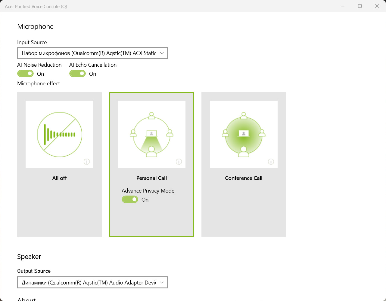Ноутбук имеет программное обеспечение с поддержкой искусственного интеллекта, которое должно устранять шумы при записи голоса. Я протестировал эту функцию, и, честно говоря, идеальной ее назвать нельзя — работает, но не всегда корректно. Также есть режим сглаживания лица, но и он оставляет желать лучшего.