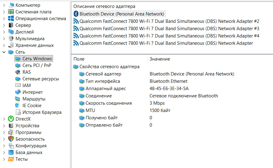 За беспроводную связь в Acer Aspire 16 AI отвечает адаптер Qualcomm FastConnect 7800. Он поддерживает Wi-Fi 7 и Bluetooth 5.3.