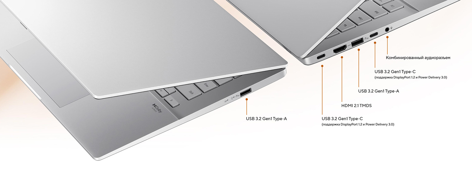 | Интерфейсы | — 2× USB 3.2 Gen1 Type‑C (поддержка дисплея / питания) — 2× USB 3.2 Gen1 Type‑A (до 5 Гбит/с) — 1× HDMI 2.1 TMDS — 1× 3,5 мм комбинированный аудиоразъем |