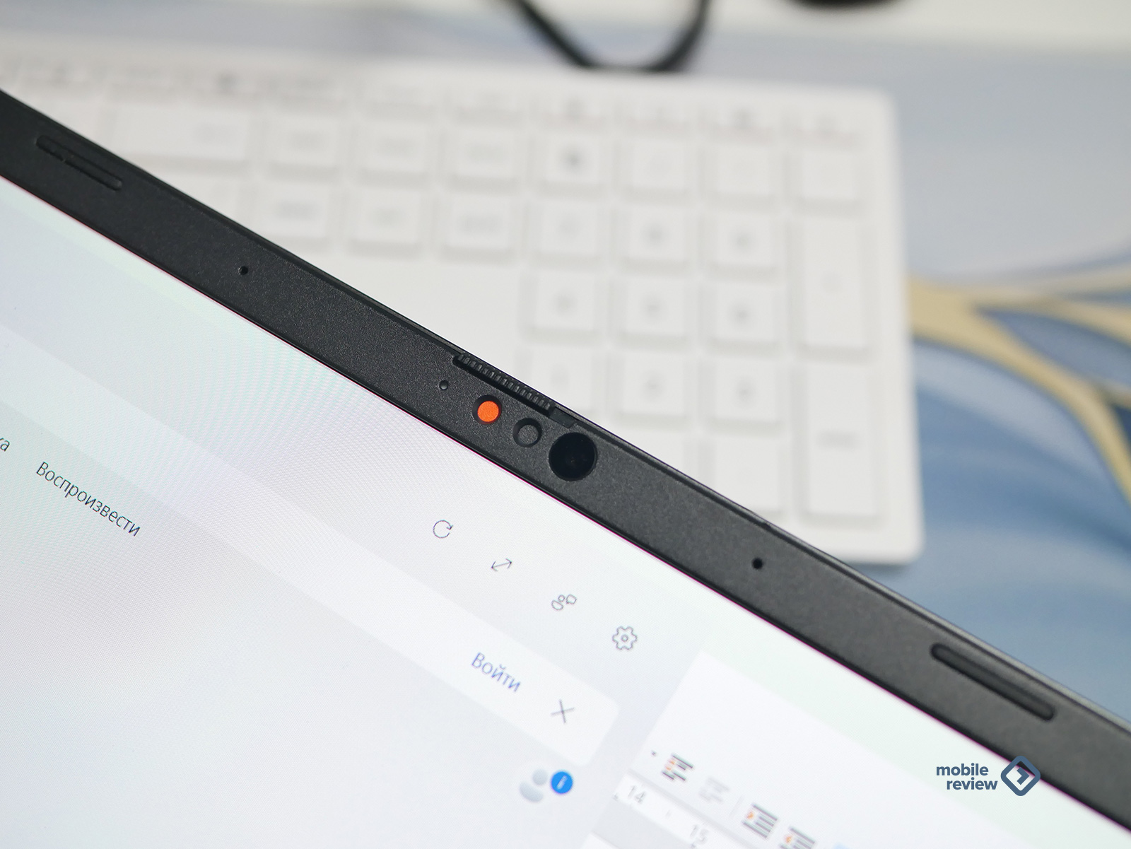 А еще на фронтальной части в верхней области лицевой панели находится камера с шторкой приватности. Как только вы сдвигаете ползунок, там появляется кружочек красного цвета. И вы визуально понимаете, что камера закрыта. А еще этот самый ползунок очень приятно передвигается. Плавно и с четкой фиксацией в крайних положениях. Мелочь, но приятная.