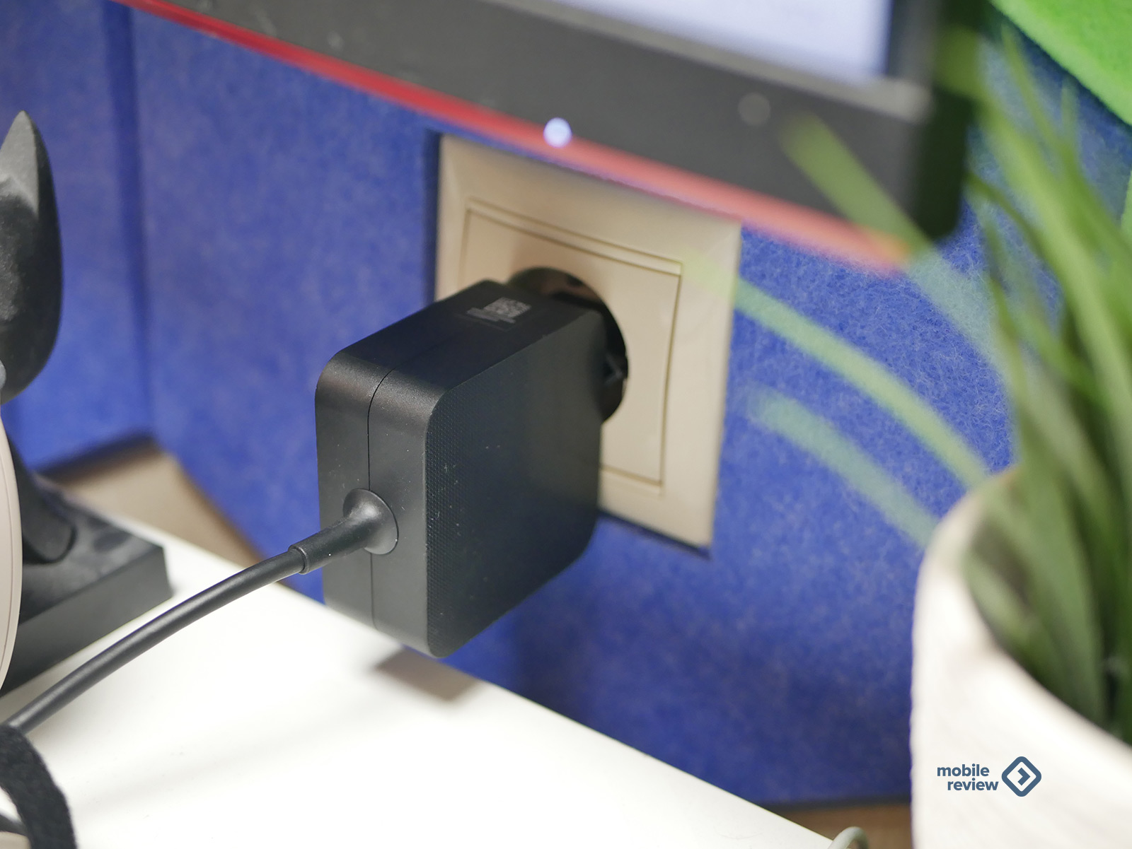 В комплект входит компактный блок питания, размерами схожий с адаптерами для смартфонов. Блок питания мощностью 65 Вт, напряжением 20 В и силой тока 3.25 А обеспечивает быструю зарядку, позволяя достичь 60% заряда примерно за 50 минут.