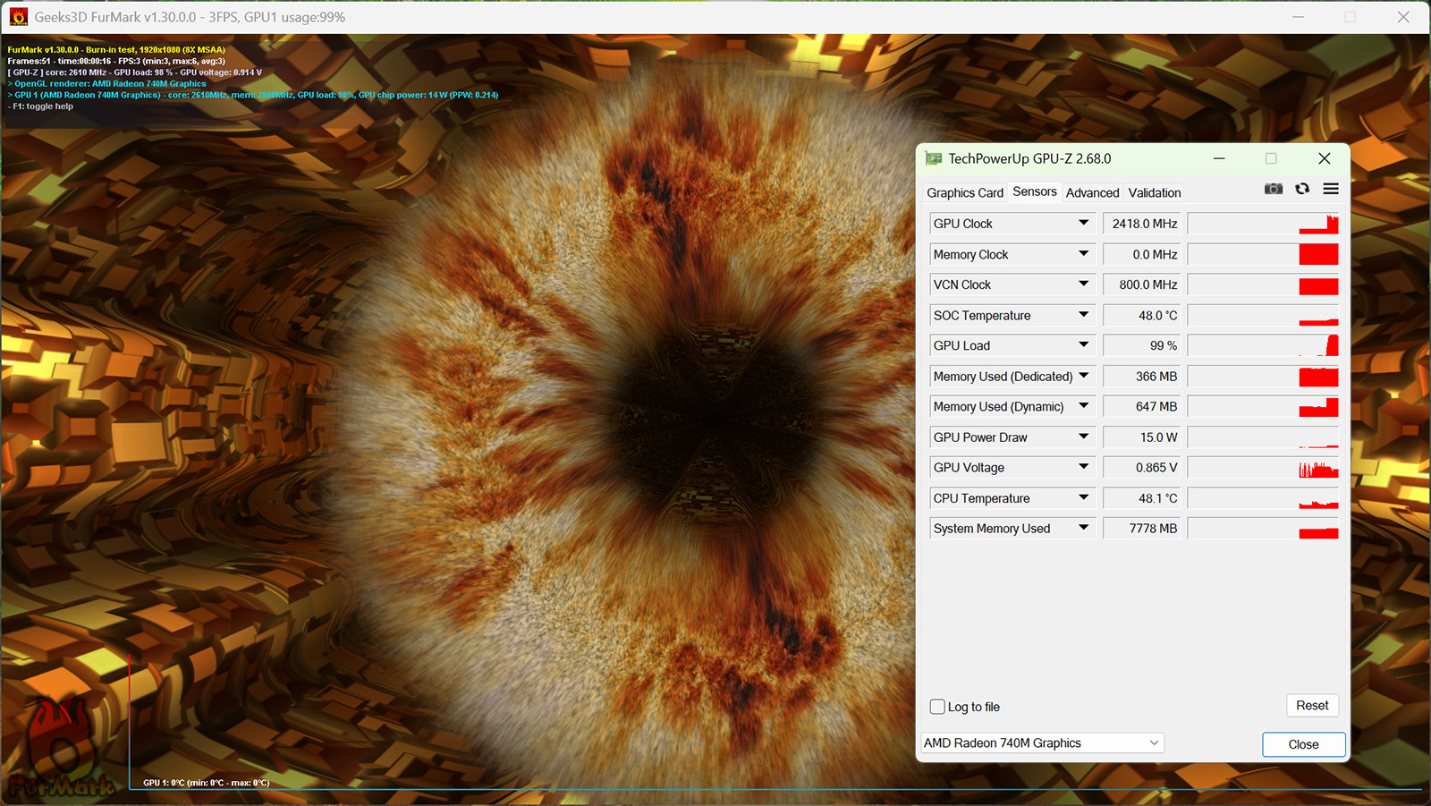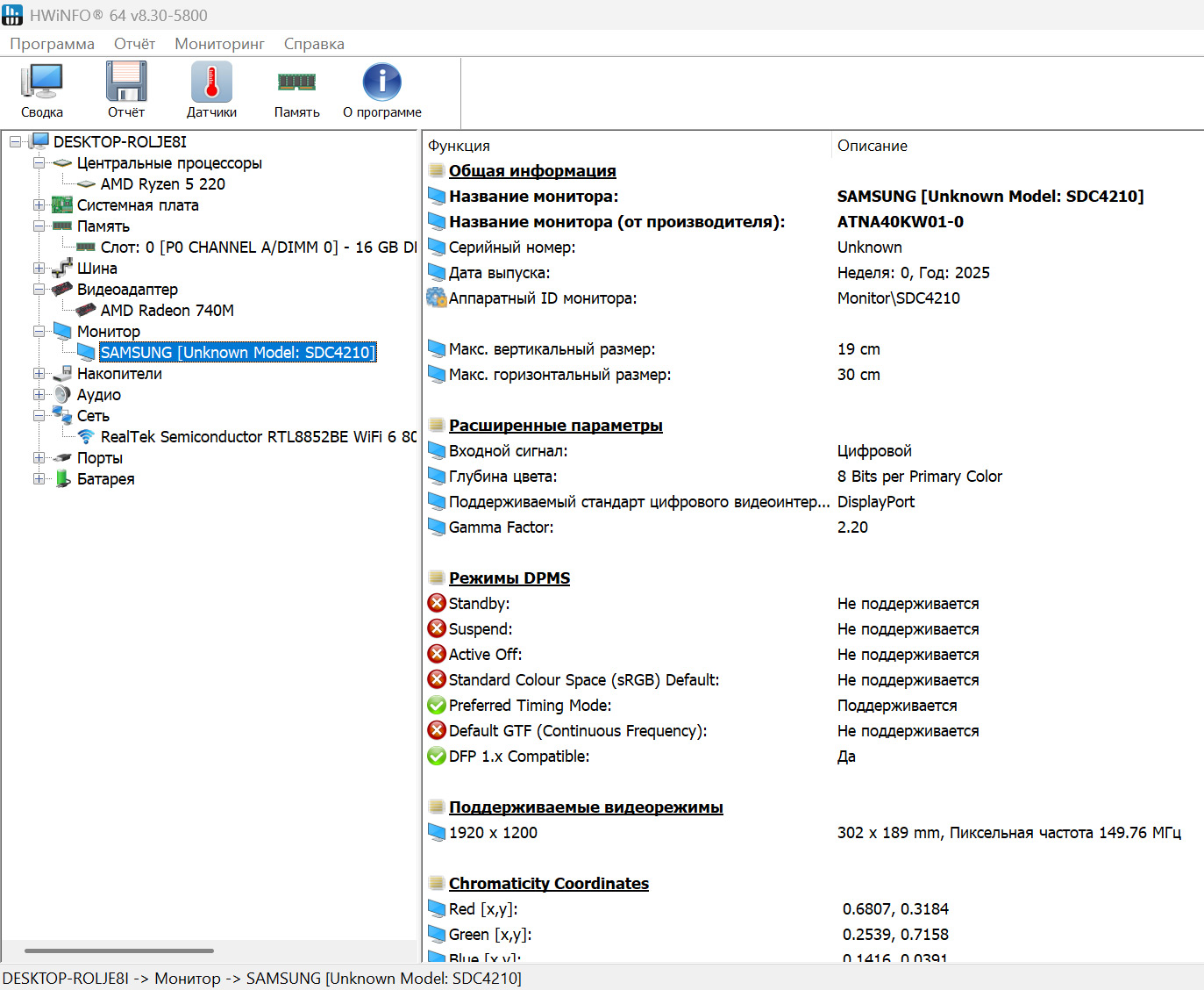 Встроенная графика Radeon 740M в AMD Ryzen 5 220 базируется на архитектуре Phoenix 2 (RDNA 3). Она имеет 4 вычислительных блока (CU), что соответствует 256 шейдерам, с рабочей частотой GPU до 2800 МГц в режиме Boost. Графическое ядро не имеет собственной видеопамяти (VRAM). Для работы оно использует часть системной оперативной памяти ноута, то есть разделяет с ней память.