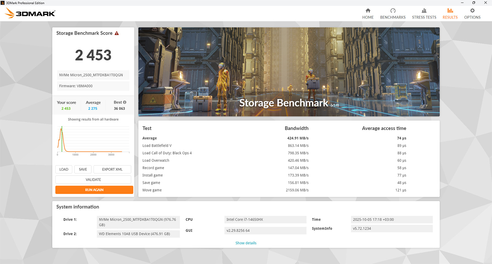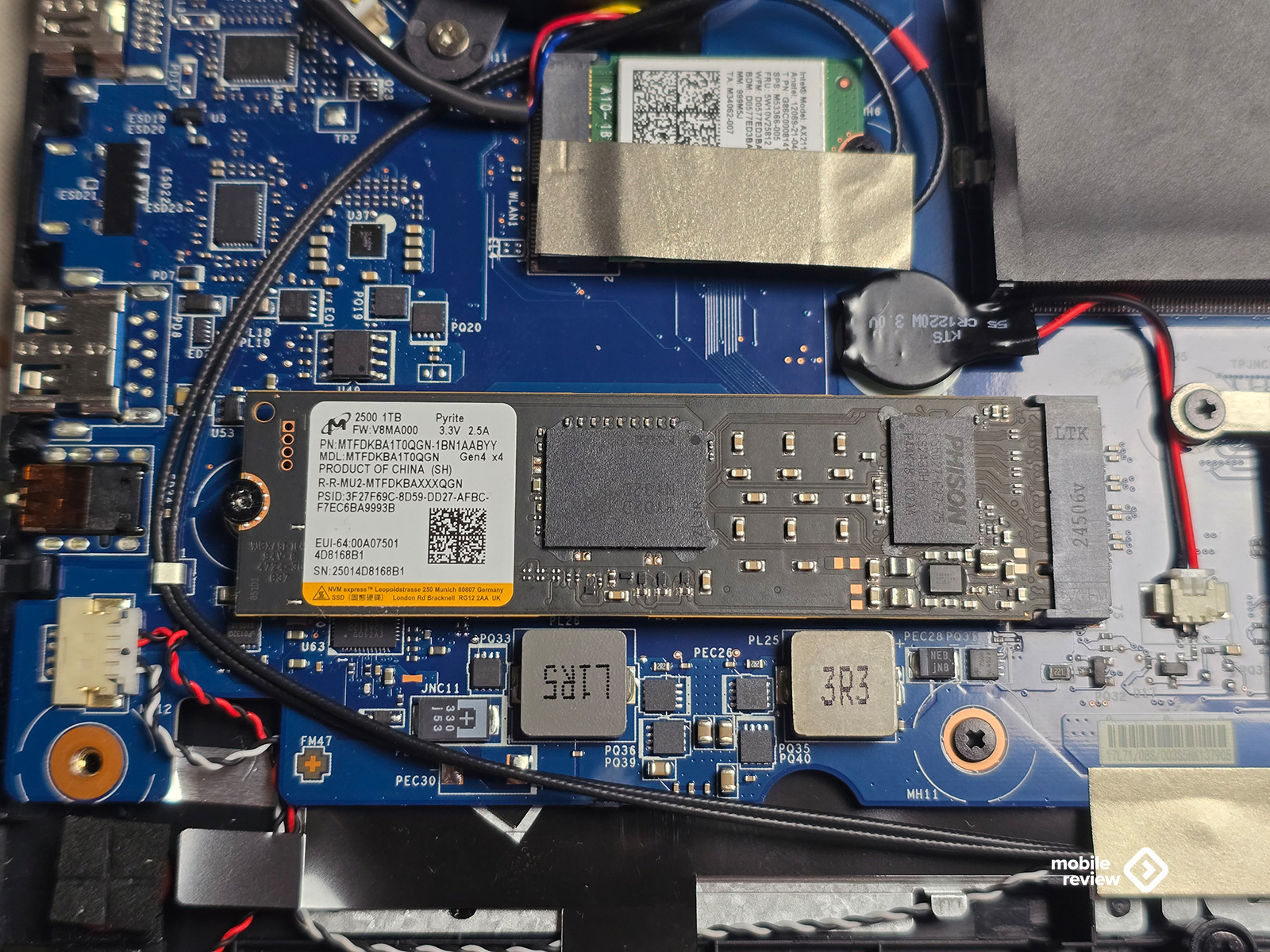В этой модели, как и во всей линейке, установлен твердотельный накопитель объемом 1 ТБ. В моем экземпляре используется Micron 2500 (MTFDKBA1T0QGN) — современный SSD формата M.2 2280 с интерфейсом PCIe Gen4 x4.