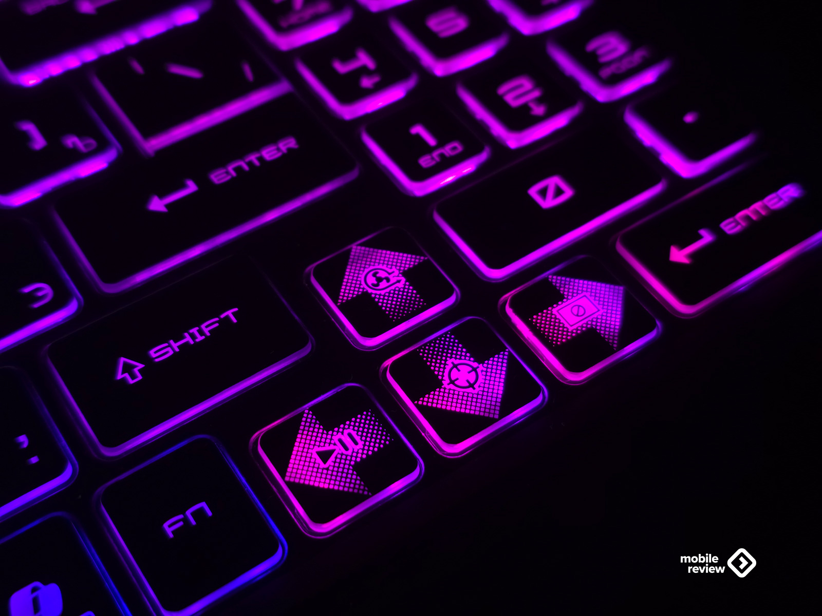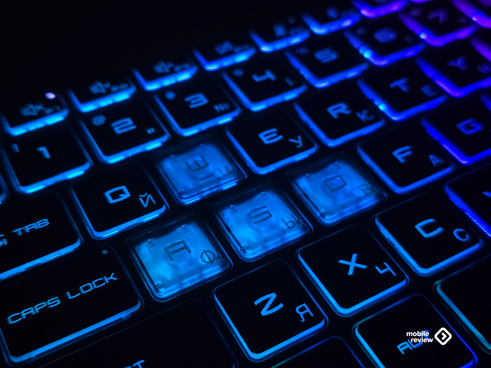 Кнопки WASD и кнопка питания прозрачные, и сквозь них видно внутреннюю структуру. Смотрится это эффектно, особенно в темноте, когда подсветка играет цветами. Но если вы больше печатаете, чем играете, то может немного отвлекать. Стрелки тоже выделены отдельно — они крупные, с полупрозрачными надписями, и в целом хорошо ощущаются под пальцами.