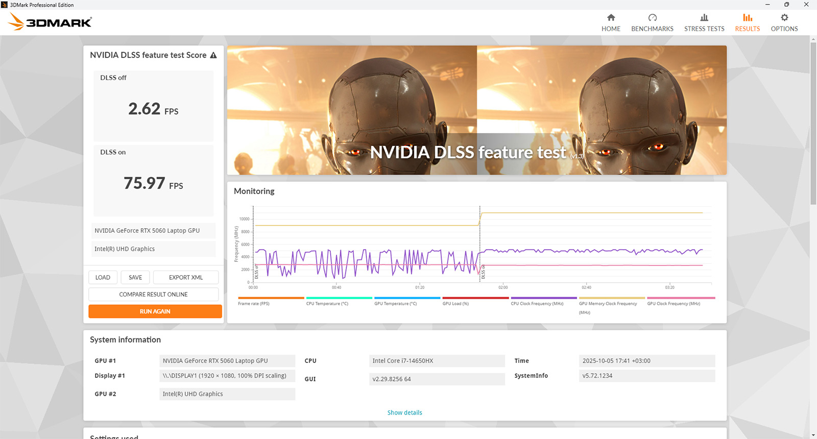 Чуть дороже — примерно за 138 000 — можно взять версию с Core i7-14650HX, но все с той же RTX 5060.