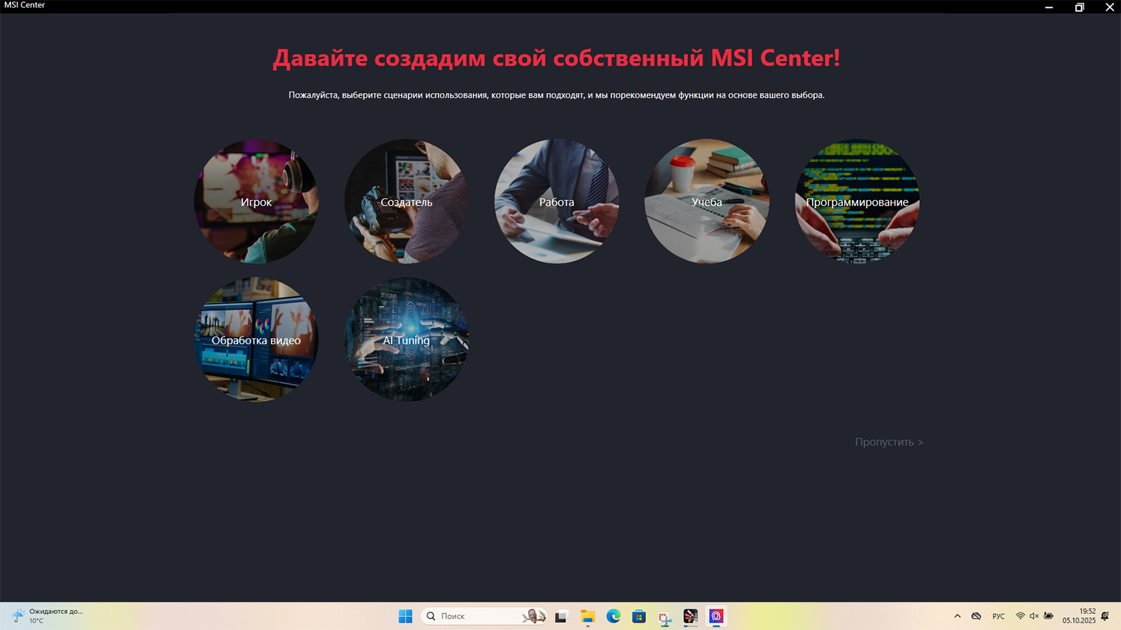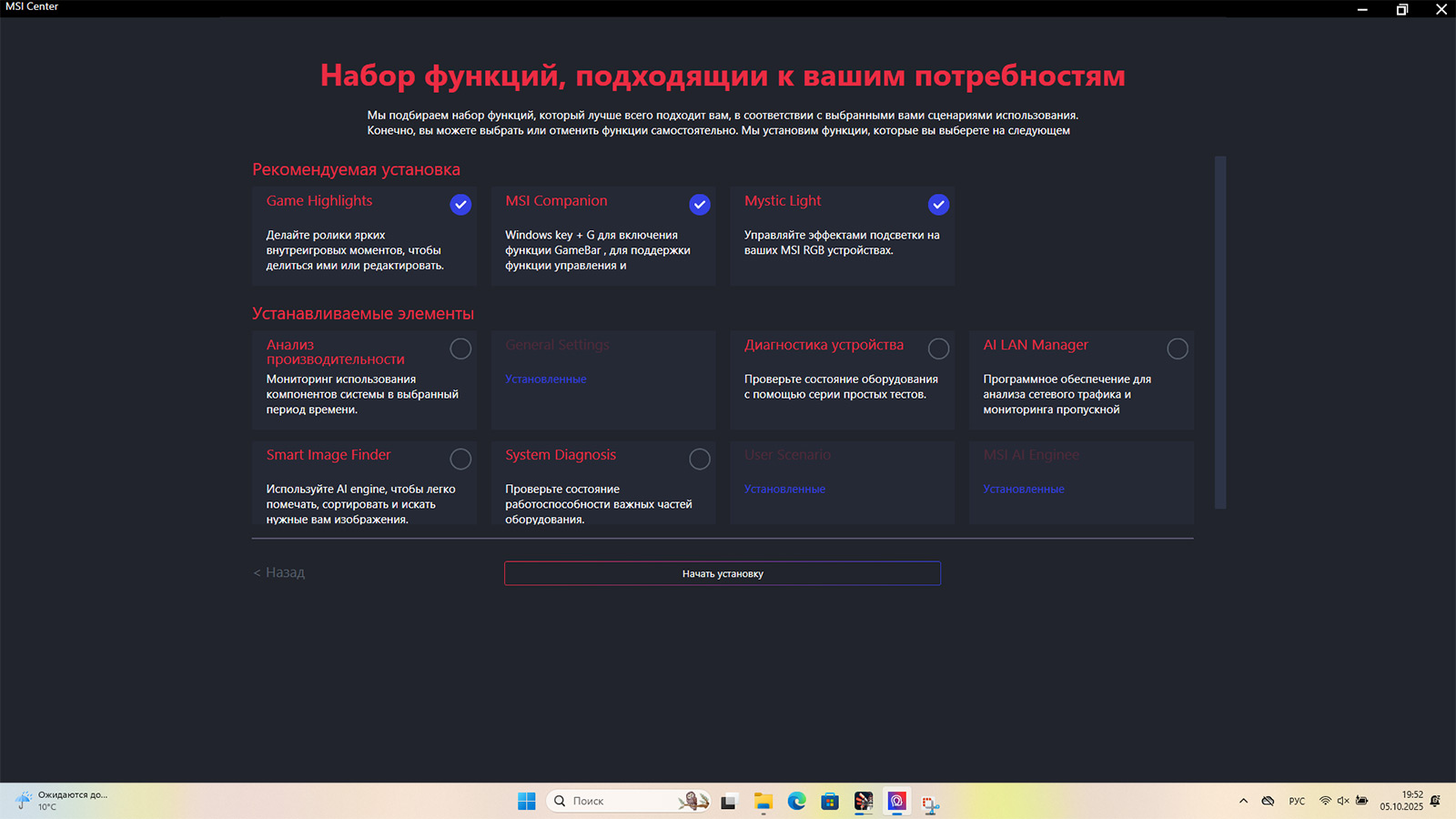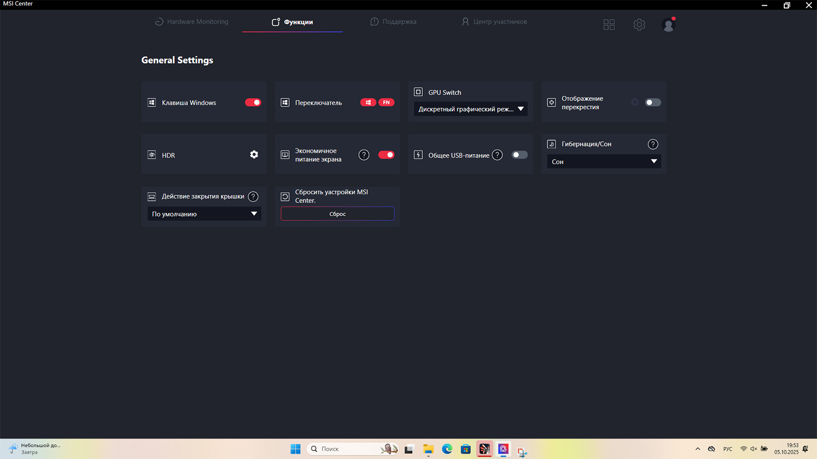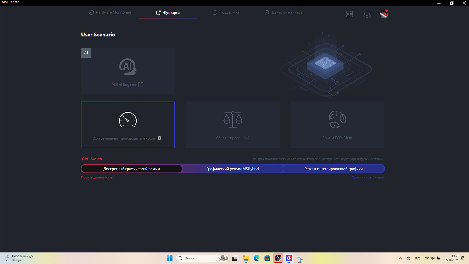 Приложение MSI Center