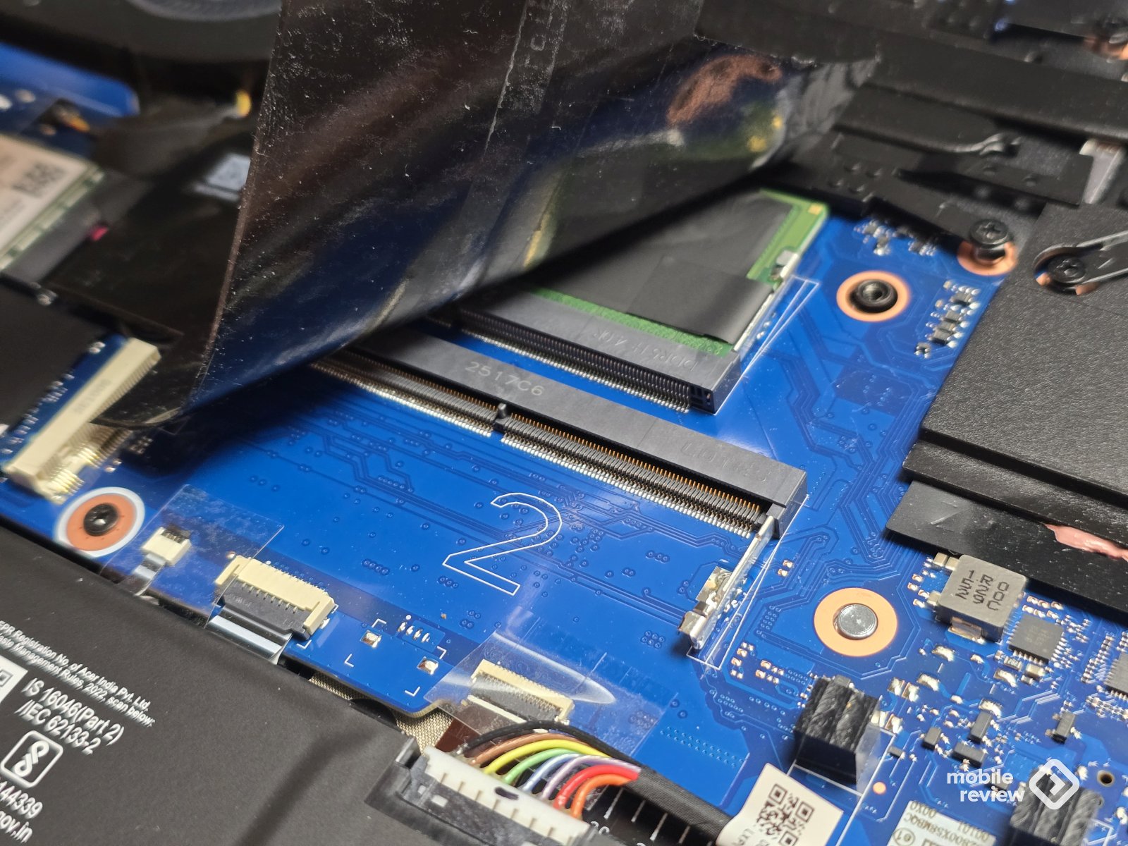 В ноутбуке есть два слота под RAM, но производитель использовал только один, в который установлена планка на 16 ГБ. Мне кажется, это немного странно — двухканальный режим действительно дал бы небольшой, но приятный прирост производительности, особенно в играх, где FPS иногда растет на несколько процентов.