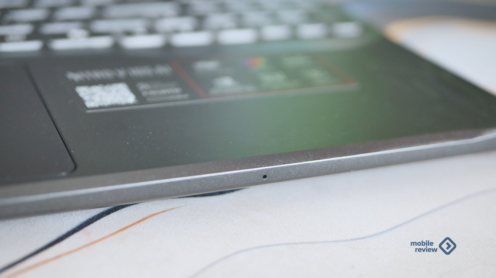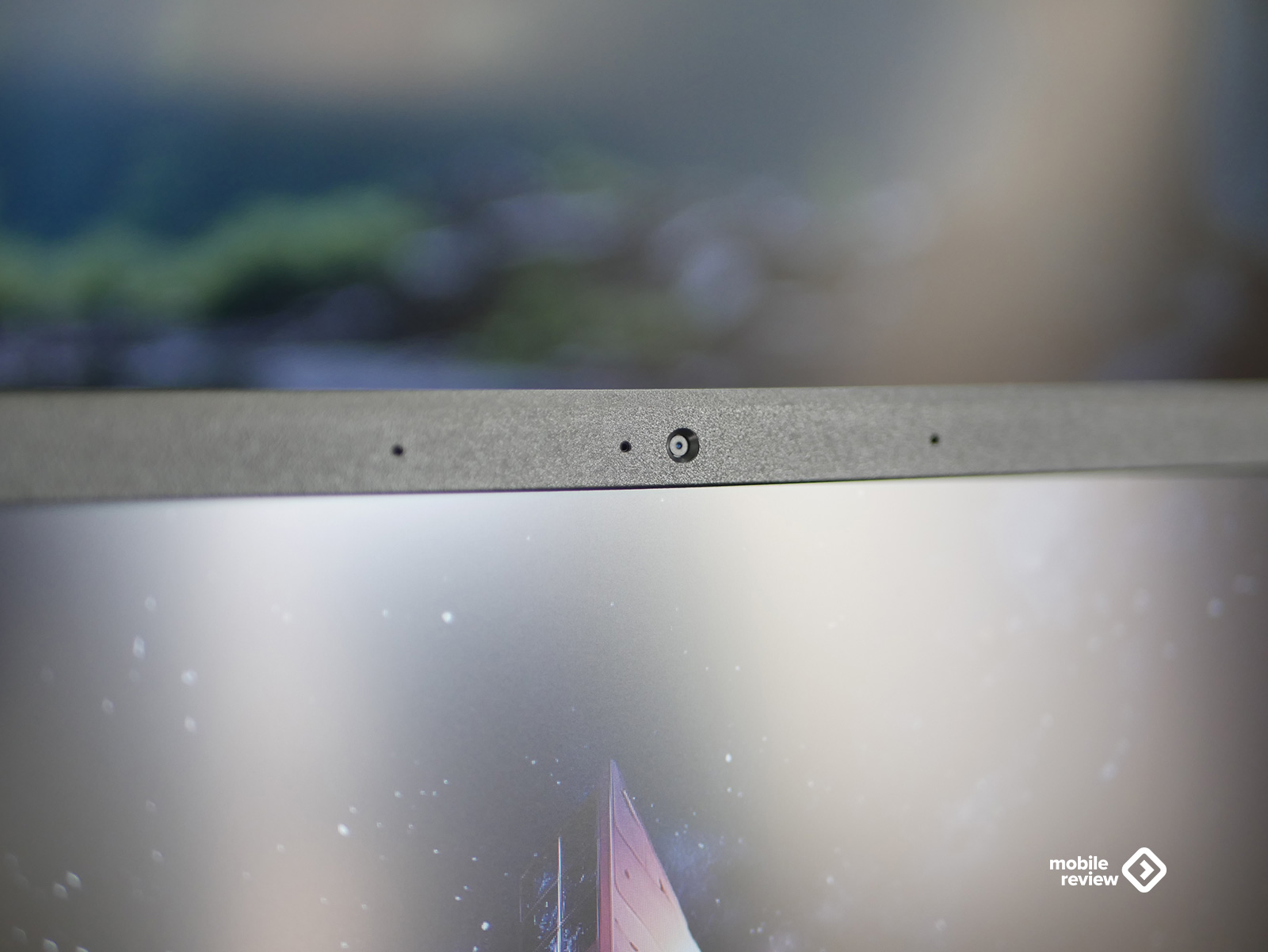 На лицевой панели, прямо над экраном, как обычно расположились два микрофона и веб-камера с индикатором работы. Никакой шторки приватности здесь нет, что, честно говоря, немного жаль — элементарная мелочь, а вещь полезная.