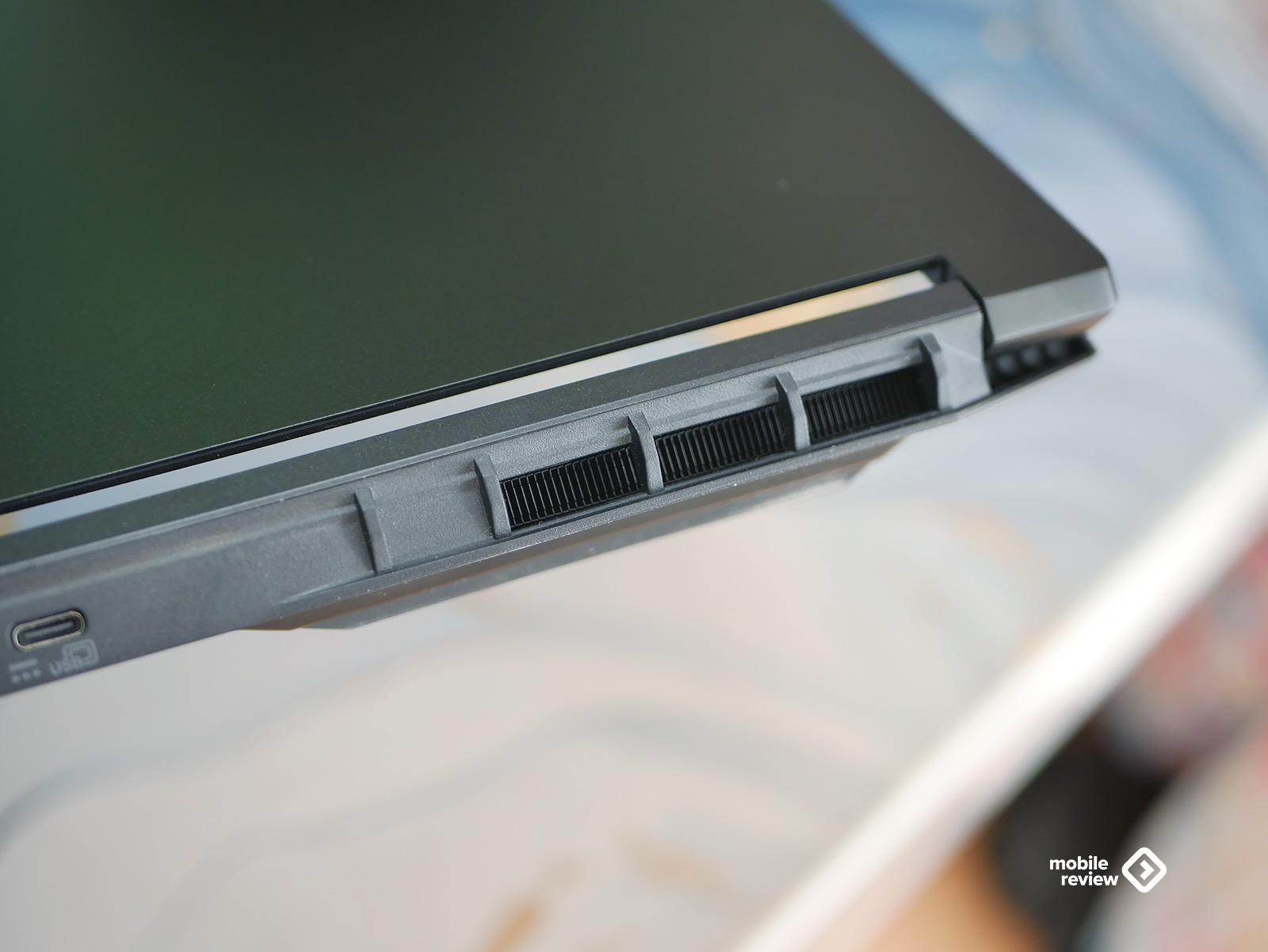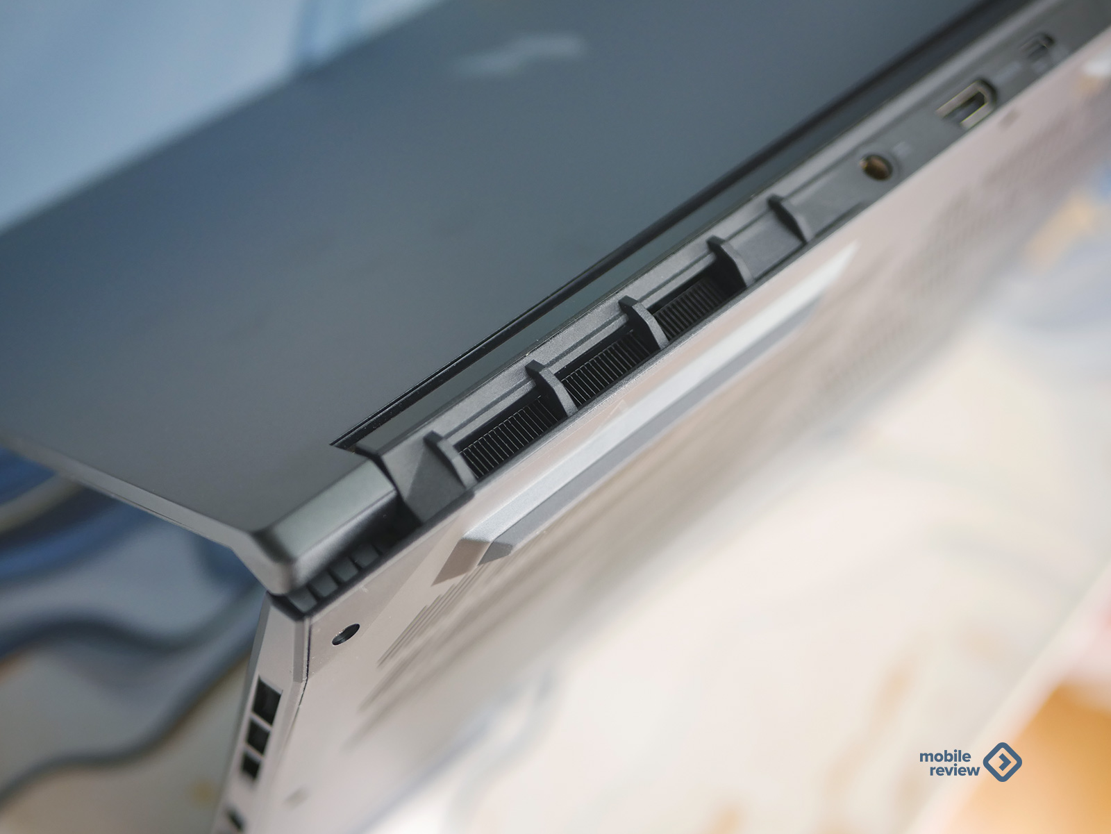 Система вентиляции продумана грамотно. «Выхлопные трубы» расположены по бокам и сзади, а холодный воздух забирается снизу и частично сверху, через решетку над клавиатурой. Все выглядит аккуратно, ничего не выпирает, не портит общий стиль.