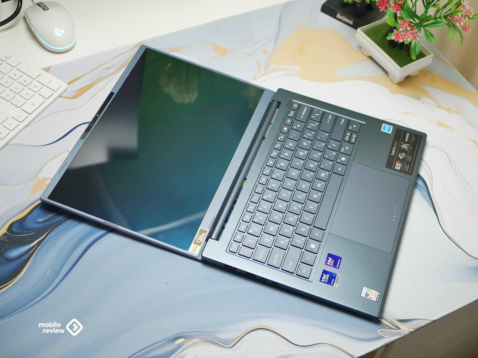 Я думаю, первое, что бросается в глаза, — это невероятная легкость. Весит меньше 1,3 кг, да и по габаритам совсем не громоздкий. Закинул в рюкзак — и вперед, хоть в кафе на удаленку, хоть в аэропорт в деловой перелет. При этом внутри это настоящая боевая машина: Intel Core Ultra 7 в паре с 32 ГБ оперативной памяти LPDDR5 и шустрым SSD на 1 ТБ. Довольно внушительный набор, чтобы справляться с любыми задачами — от серьезной работы с данными до вечернего киномарафона.