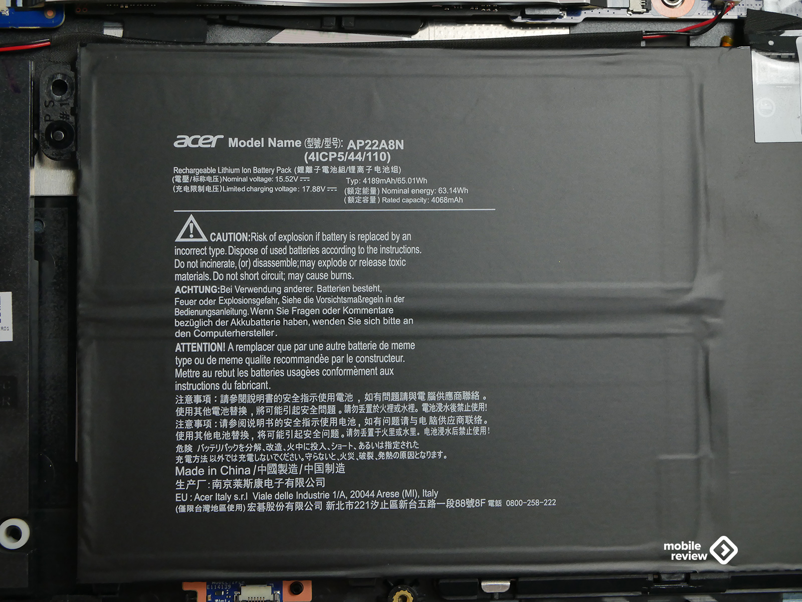 | Аккумулятор | 63.14 Вт·ч (Li-Ion) Блок питания на 100 Вт |