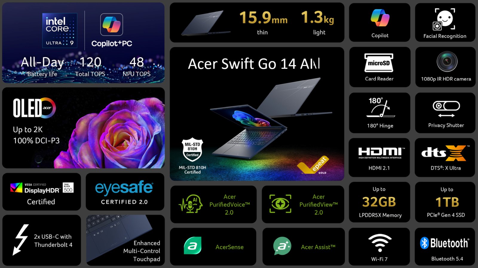 Модель Swift Go 14 AI на полном серьезе прошла сертификацию по MIL‑STD‑810H — из-за этого как‑то сразу смотришь на нее иначе.