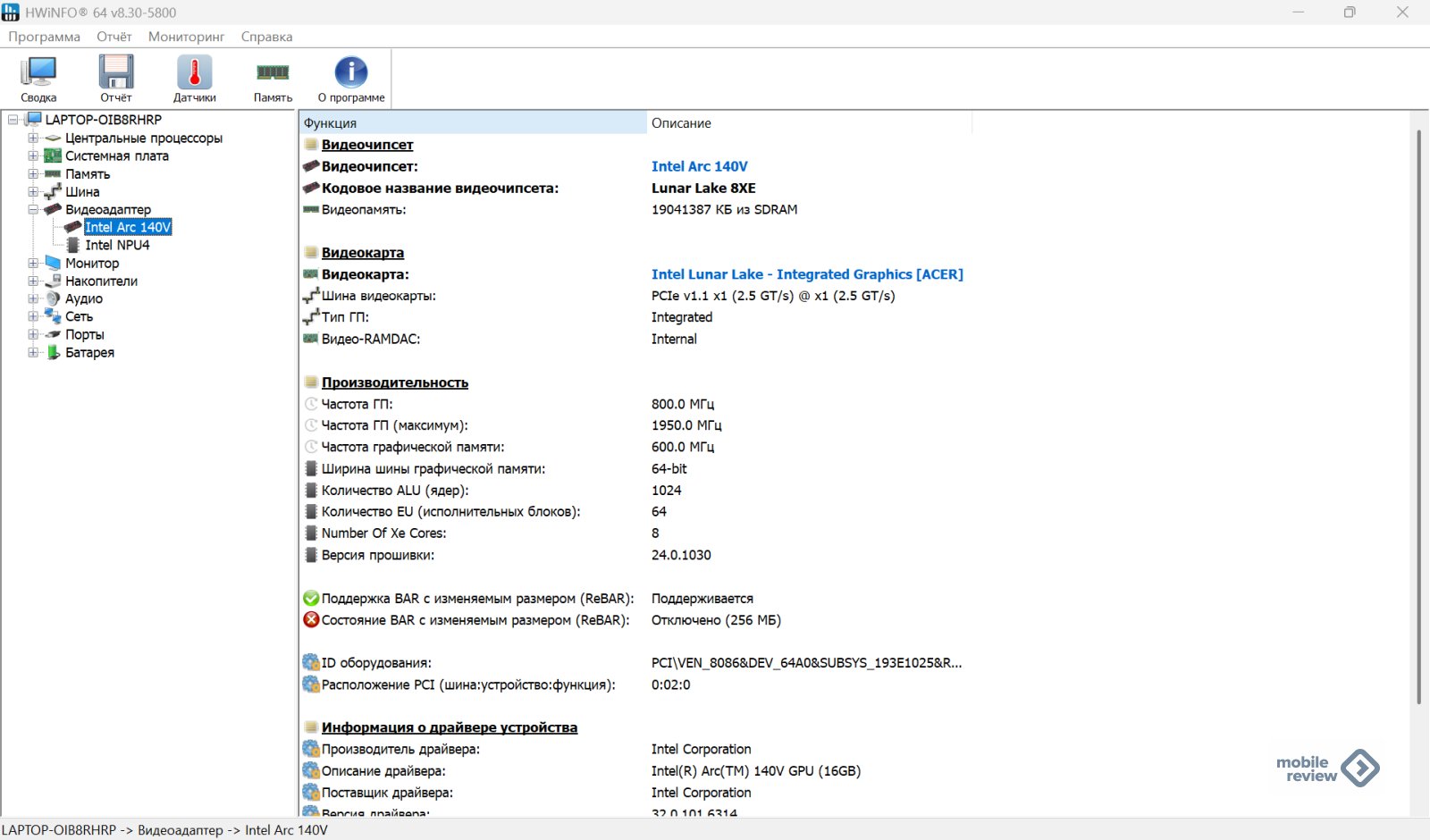 И, конечно, нельзя обойти стороной графику Intel Arc 140V. Архитектура Xe2, 3 нм техпроцесс, частота до 1950 МГц — звучит как спецификация игрового монстра, но на деле это просто очень достойная встроенная графика. Трассировка лучей с 8 специализированными ядрами? Да, она тут есть! Конечно, это не замена дискретной видеокарте, но для нетребовательных игр (League of Legends, Fortnite, CS2 в 1080p на средних настройках) — более чем достаточно.